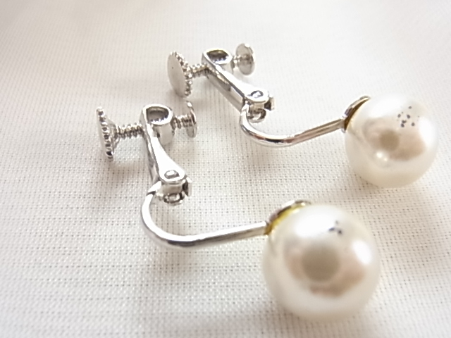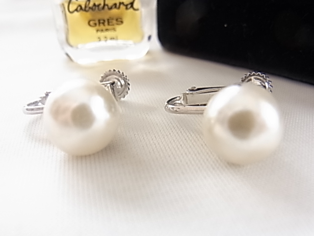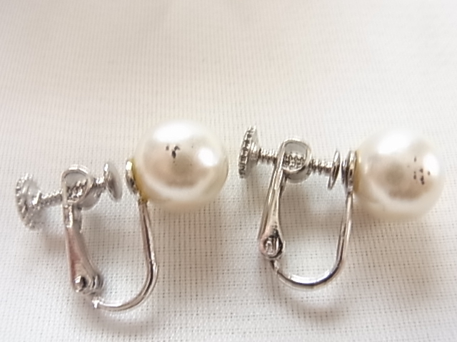 ビンテージ/ヴィンテージ 品質不明 パールストーン 真珠珠 材質不明 使いやすい王道デザイン 上品 剥げ有ります 難有イヤリング■