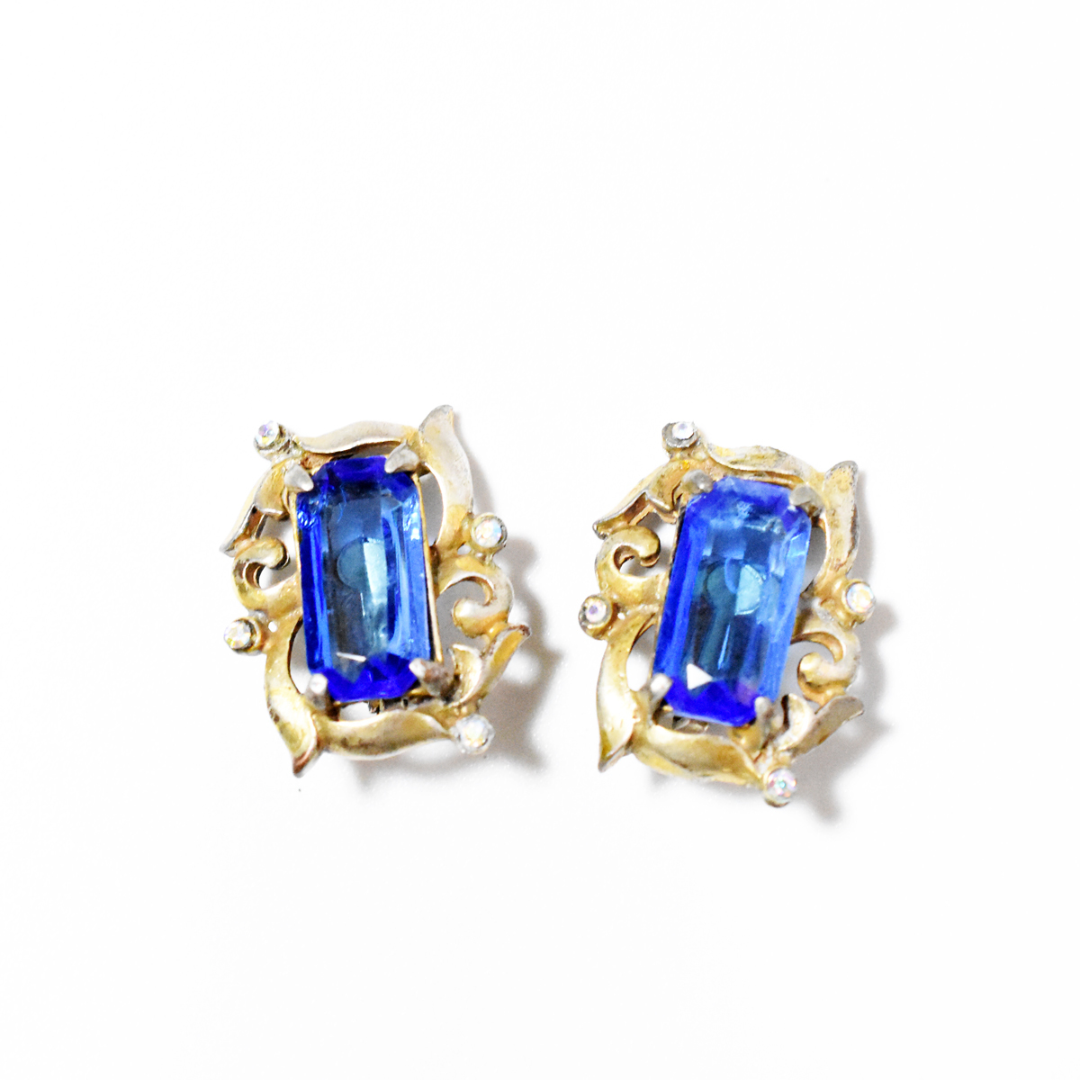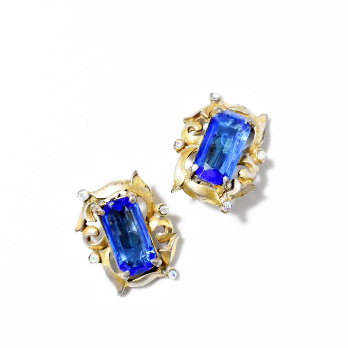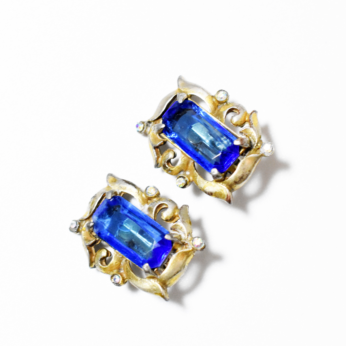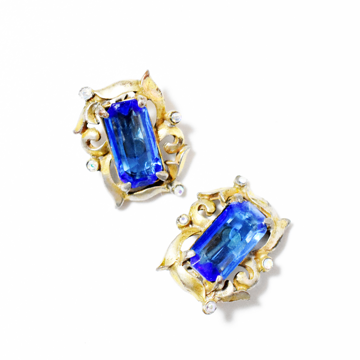 透明度の高い美しいブルーガラスとオーロララインストーンが美しいヴィンテージイヤリング。