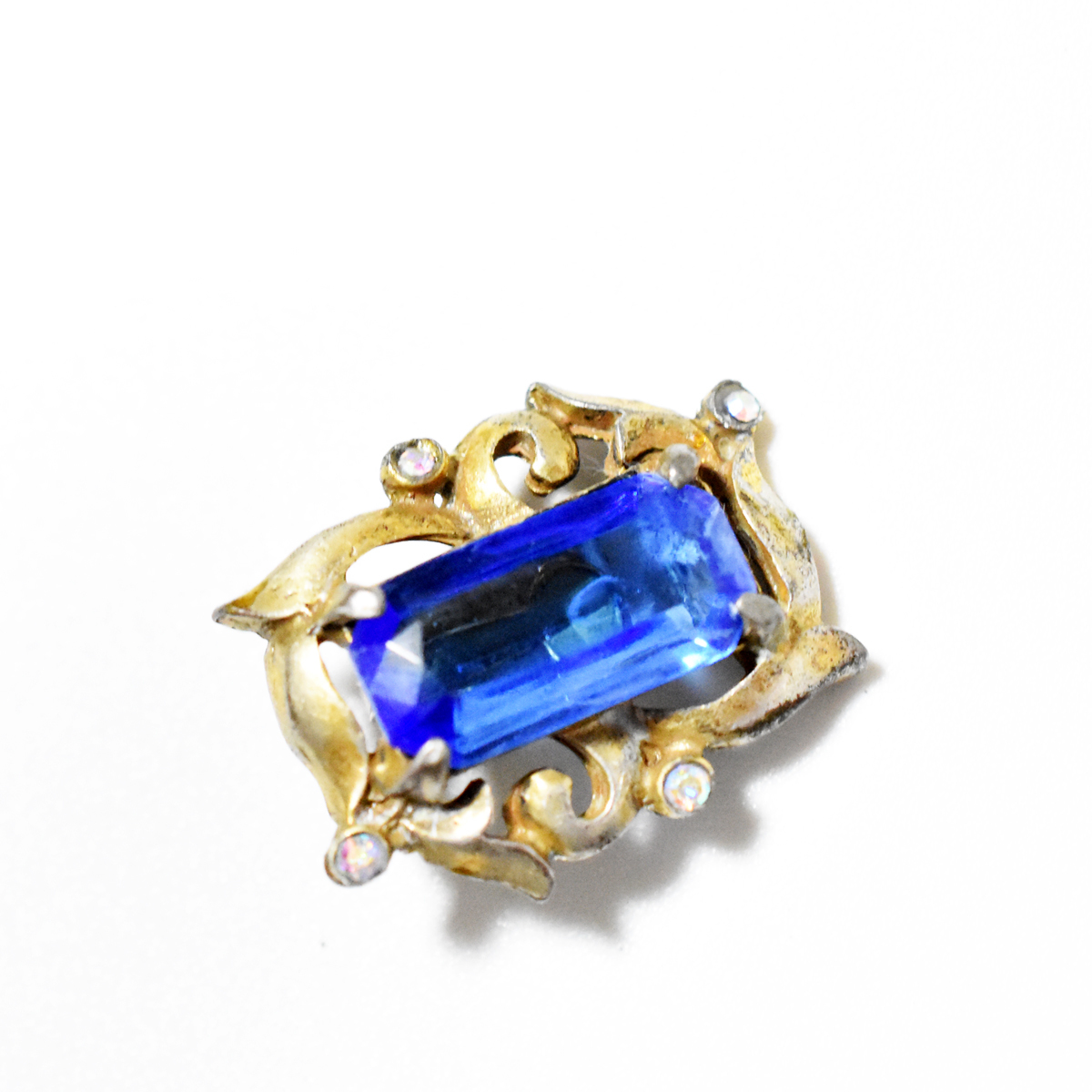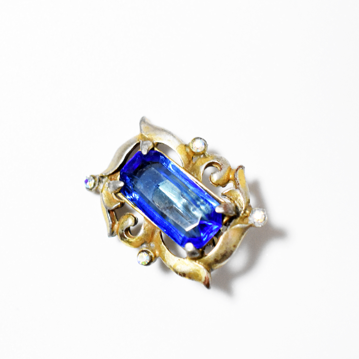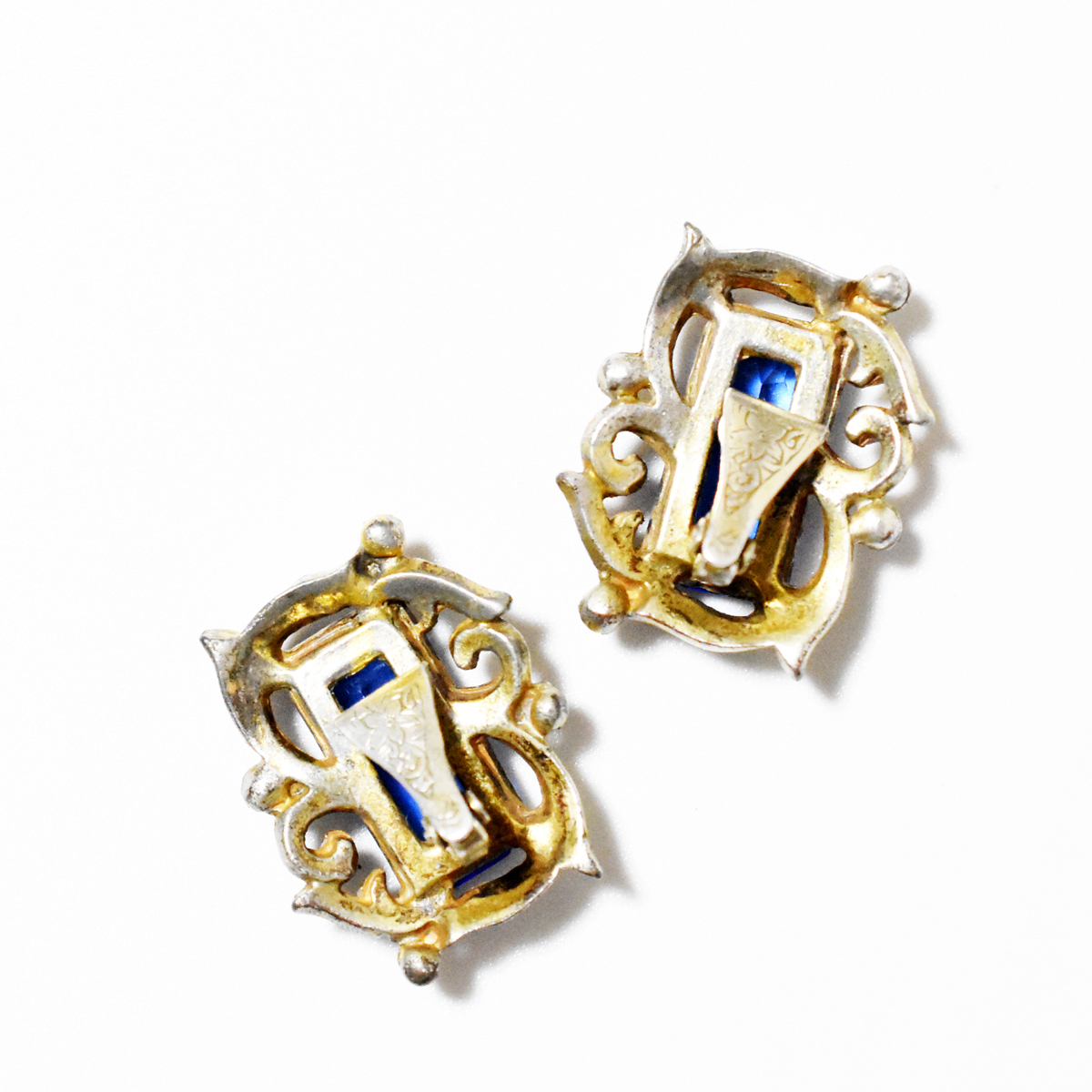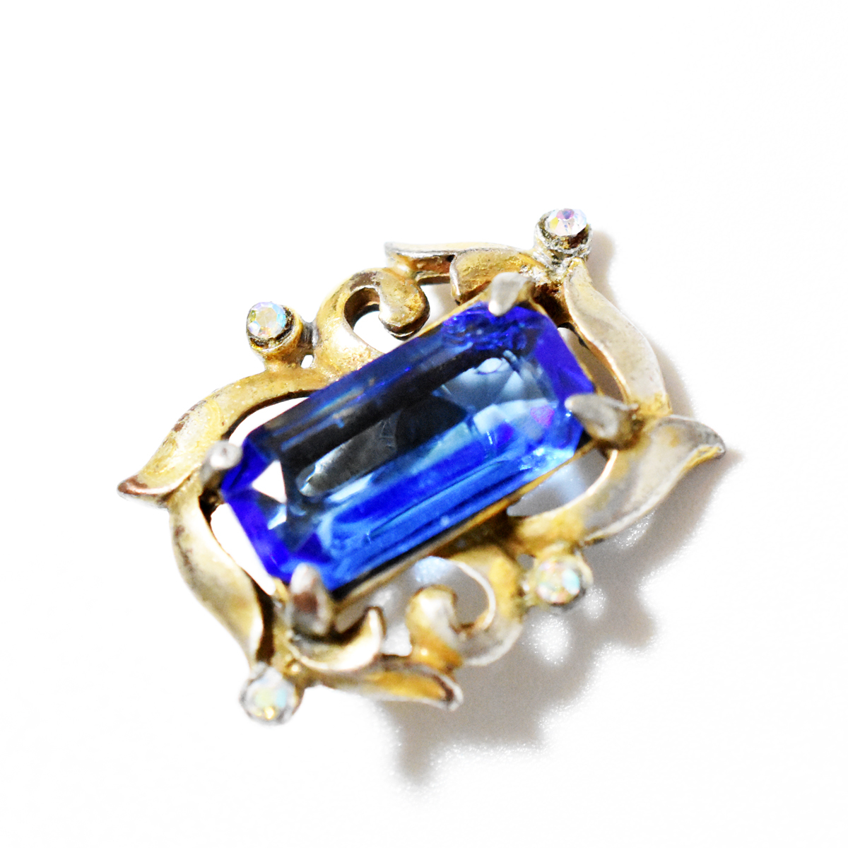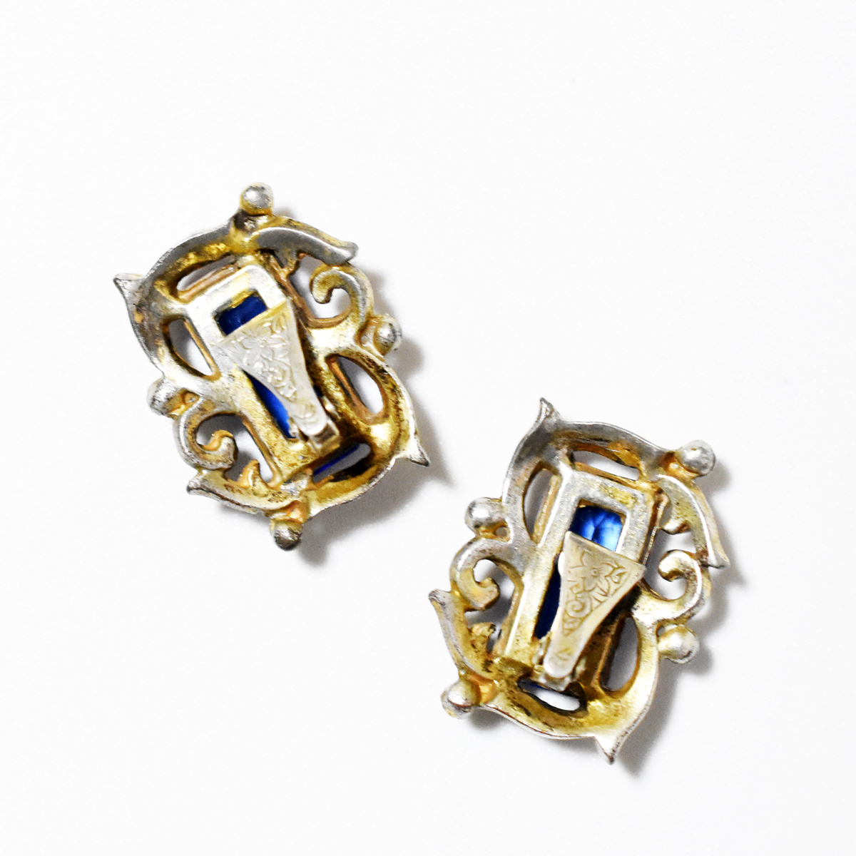 透明度の高い美しいブルーガラスとオーロララインストーンが美しいヴィンテージイヤリング。