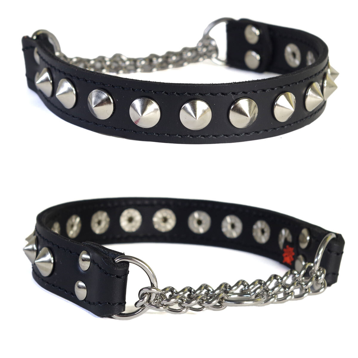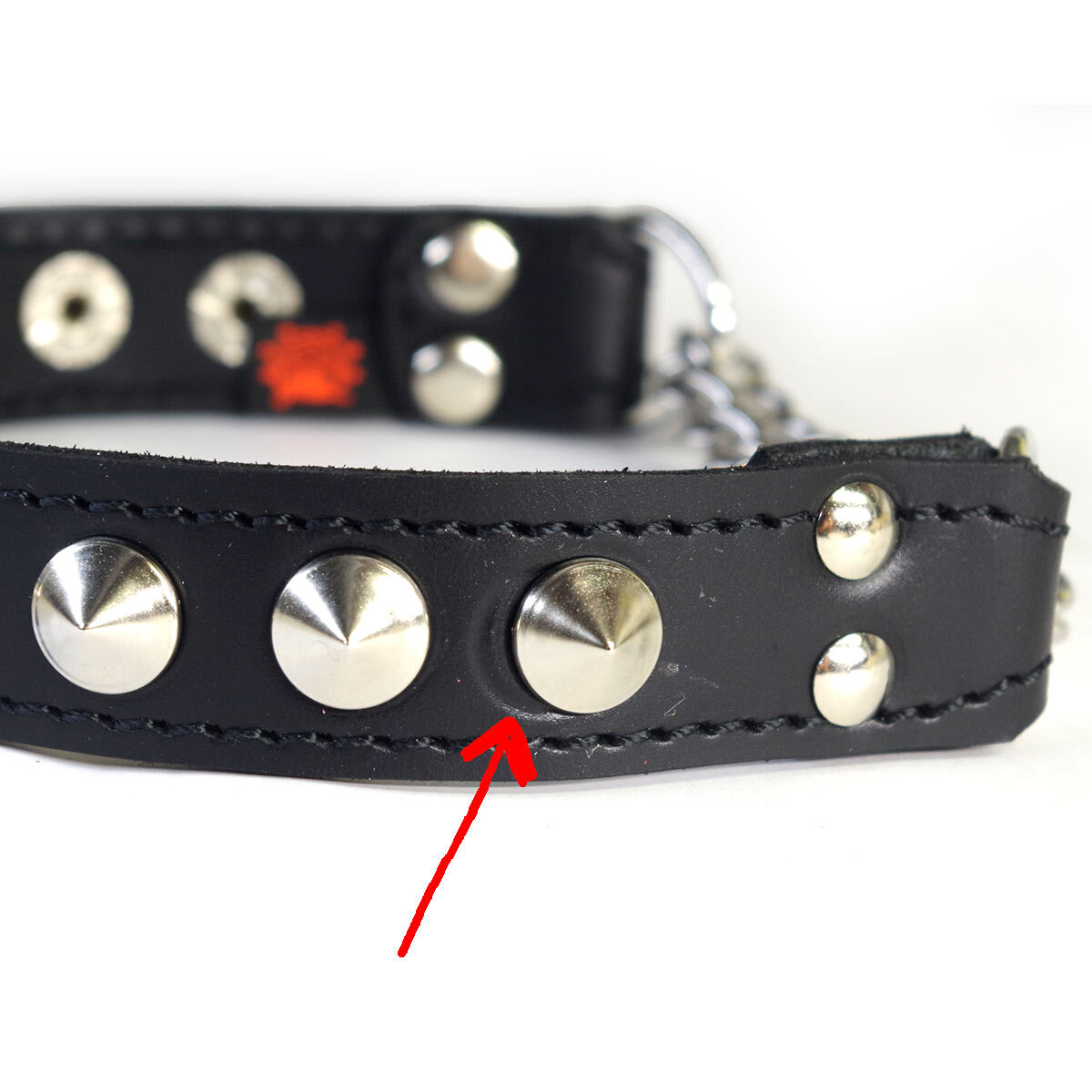 中形犬用の3cm幅のハーフチョークです。調節できないので普段ハーフチョークを使っている人で革部分と鎖部分の確認ができる人のみでお願いします