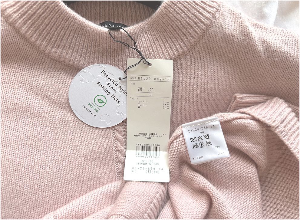 最終価格★TRANS WORK トランスワーク・三陽商会★ウール混・ニット・セーター・ライトピンク・40・ゆったりLサイズ・¥23,100★未使用