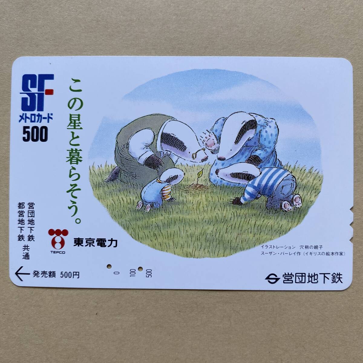 【使用済】 メトロカード 営団地下鉄 東京メトロ 穴熊の親子 スーザン・バーレイ作 (イギリスの絵本作家) イラスト 東京電力