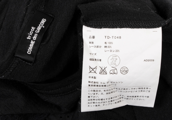 トリココムデギャルソンtricot COMME des GARCONS レース切替ニットソー 黒M位 |