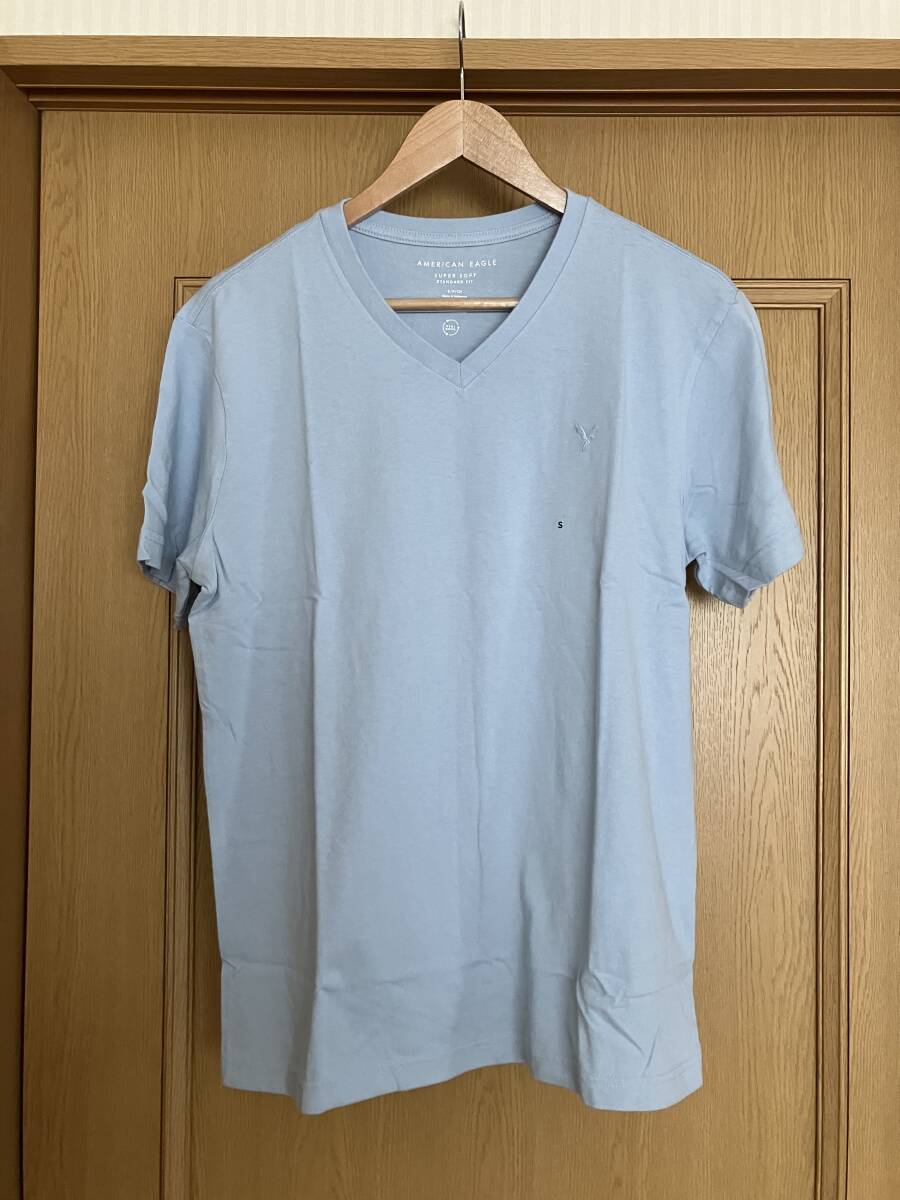 AMERICAN EAGLE OUTFITTERS ( アメリカンイーグル アウトフィッターズ )の爽やかアイスブルーVネックTシャツです。