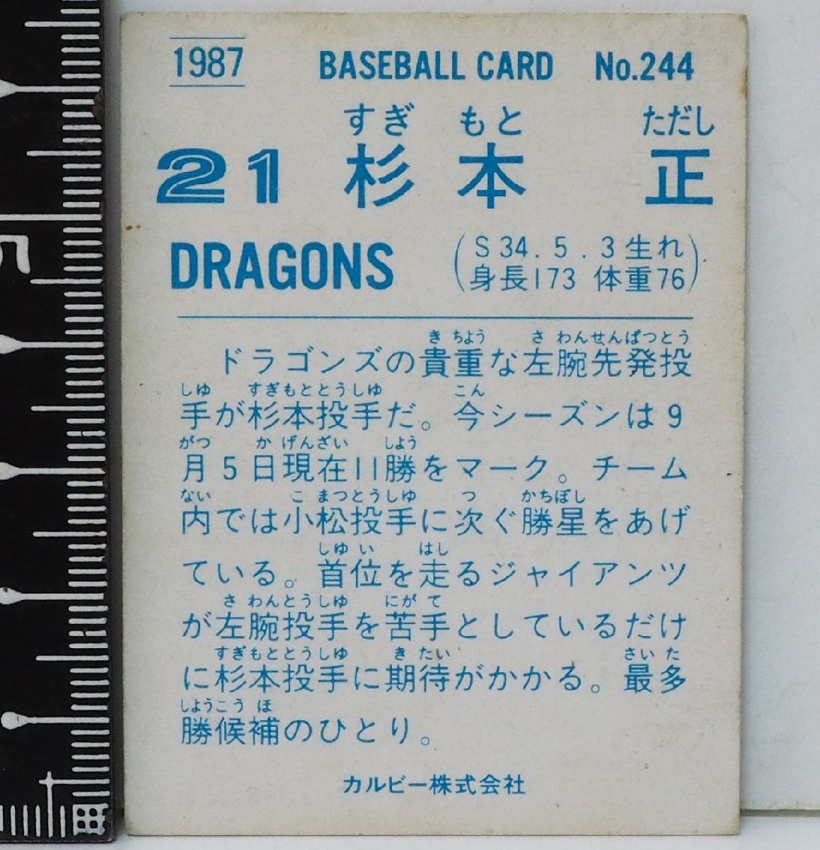 87年 カルビー プロ野球カード No.244【杉浦 正 中日ドラゴンズ】昭和62年 1987年 当時物 Calbee おまけ 食玩 BASEBALL【中古】送料込