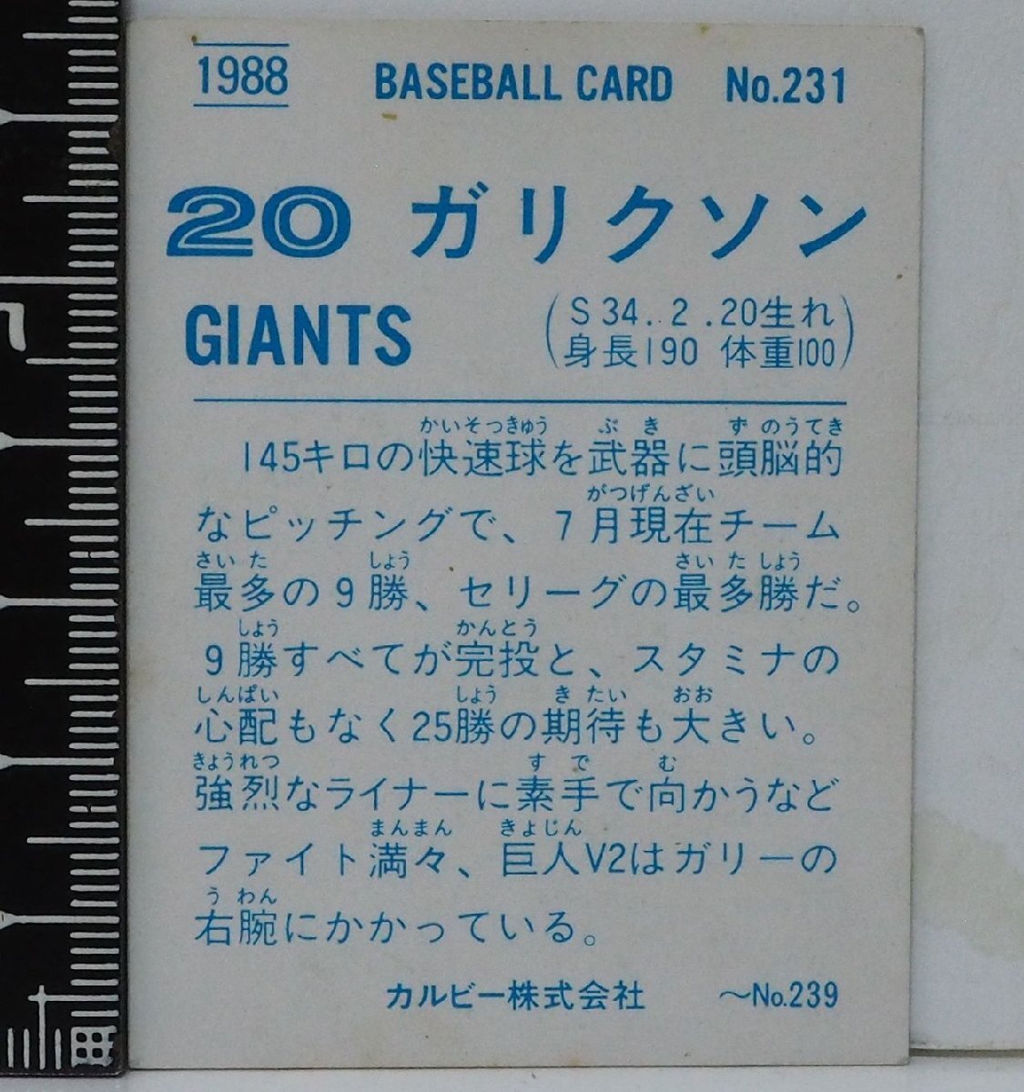 88年 カルビー プロ野球カード No.231【ガリクソン 読売ジャイアンツ巨人】昭和63年 1988年 当時物Calbeeおまけ食玩BASEBALL【中古】送料込