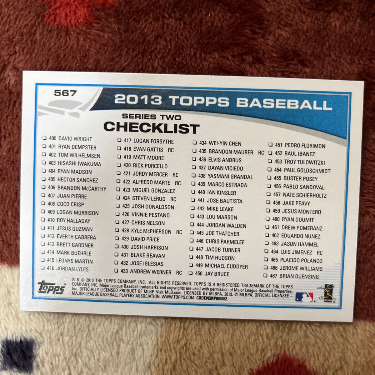 Topps 2013 MLBトレーディングカード チェックリストカード アルフォンゾ・ソリアーノ カブス ヤンキース 400ホーマー