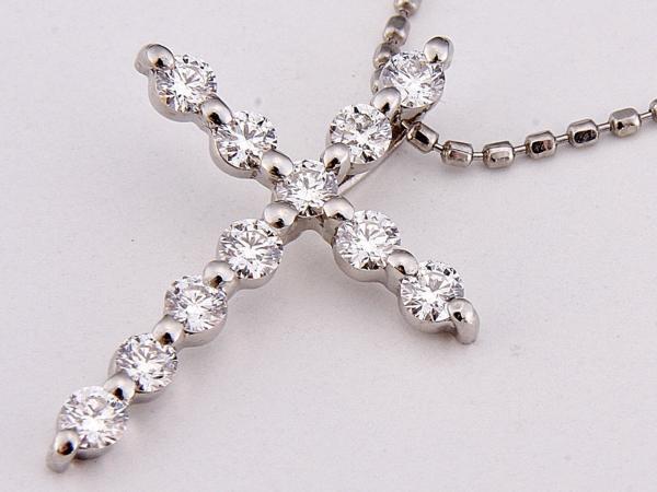 Pt850/Pt900プラチナダイヤ0.30Ct十字架クロスネックレス40cmです。