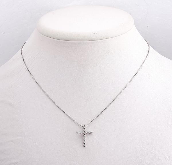 トップの十字架に11石合計0.30Ctの天然ダイヤモンドが使用されています。