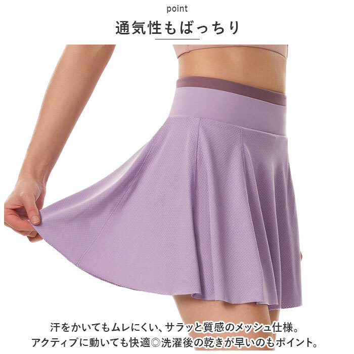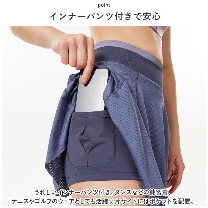 | 商品説明 | ・・ヨガやフィットネスシーンなどで大活躍!インナー付きフレアスカート が新登場。 ・【軽やかな履き心地】 ・動くたびにふんわり広がるフレアスカート。軽量で伸縮性もあり、体の動きを妨げない! ・【通気性もばっちり】 ・汗をかいてもムレにくい、サラッと質感のメッシュ仕様。アクティブに動いても快適◎洗濯後の乾きが早いのもポイント。 ・【心地よくフィット】 ・幅広ゴムの入ったハイウエストデザイン。締め付けることなくすっきりキレイに魅せてくれて、自分サイズにフィット。 ・【インナーパンツ付きで安心】 ・うれしいインナーパンツ付き。ダンスなどの練習着、テニスやゴルフのウェアとしても活躍☆片サイドにはポケットを配置。 ・【選べるカラー】 ・着回しやすい、落ち着きのあるカラーをラインナップ。洗い替え用に色違いで揃えるのもおすすめ。 |