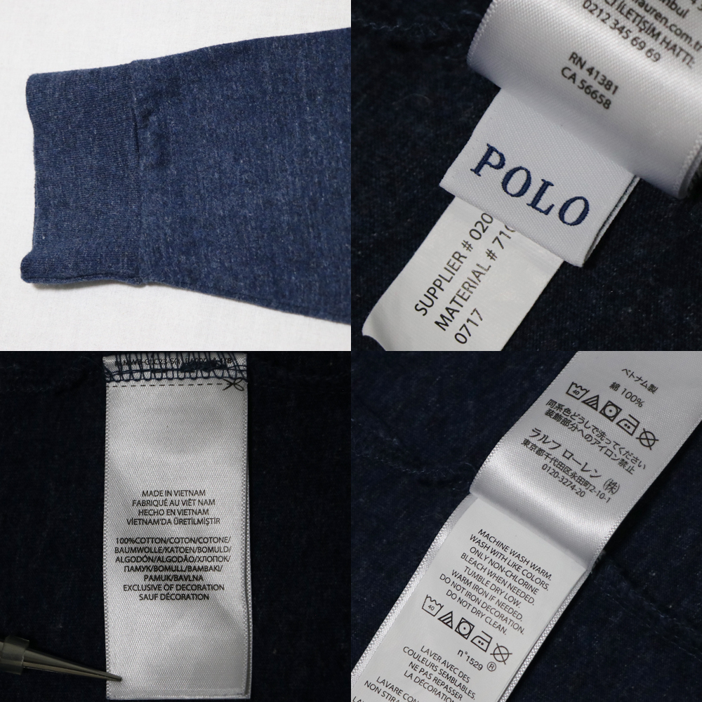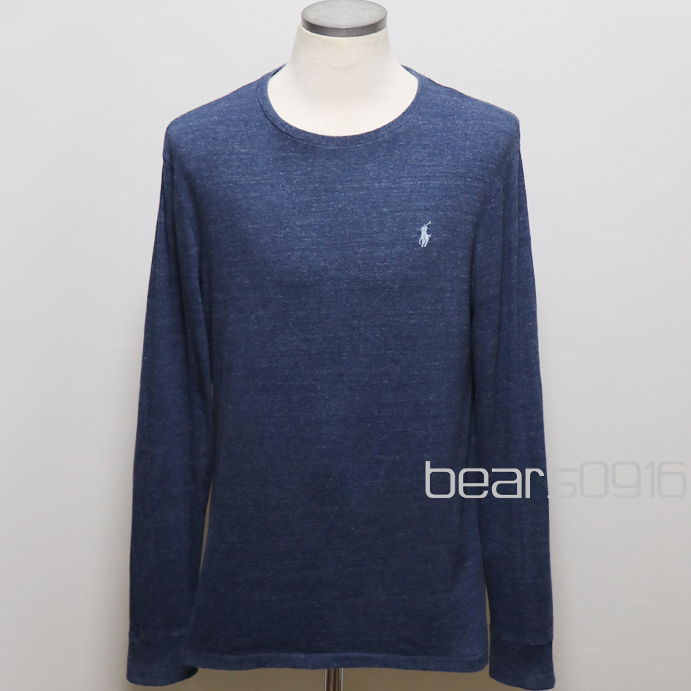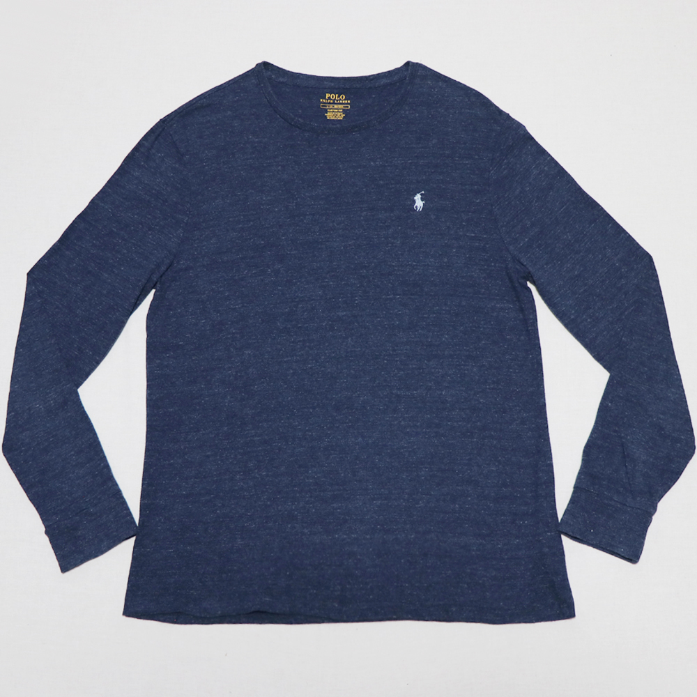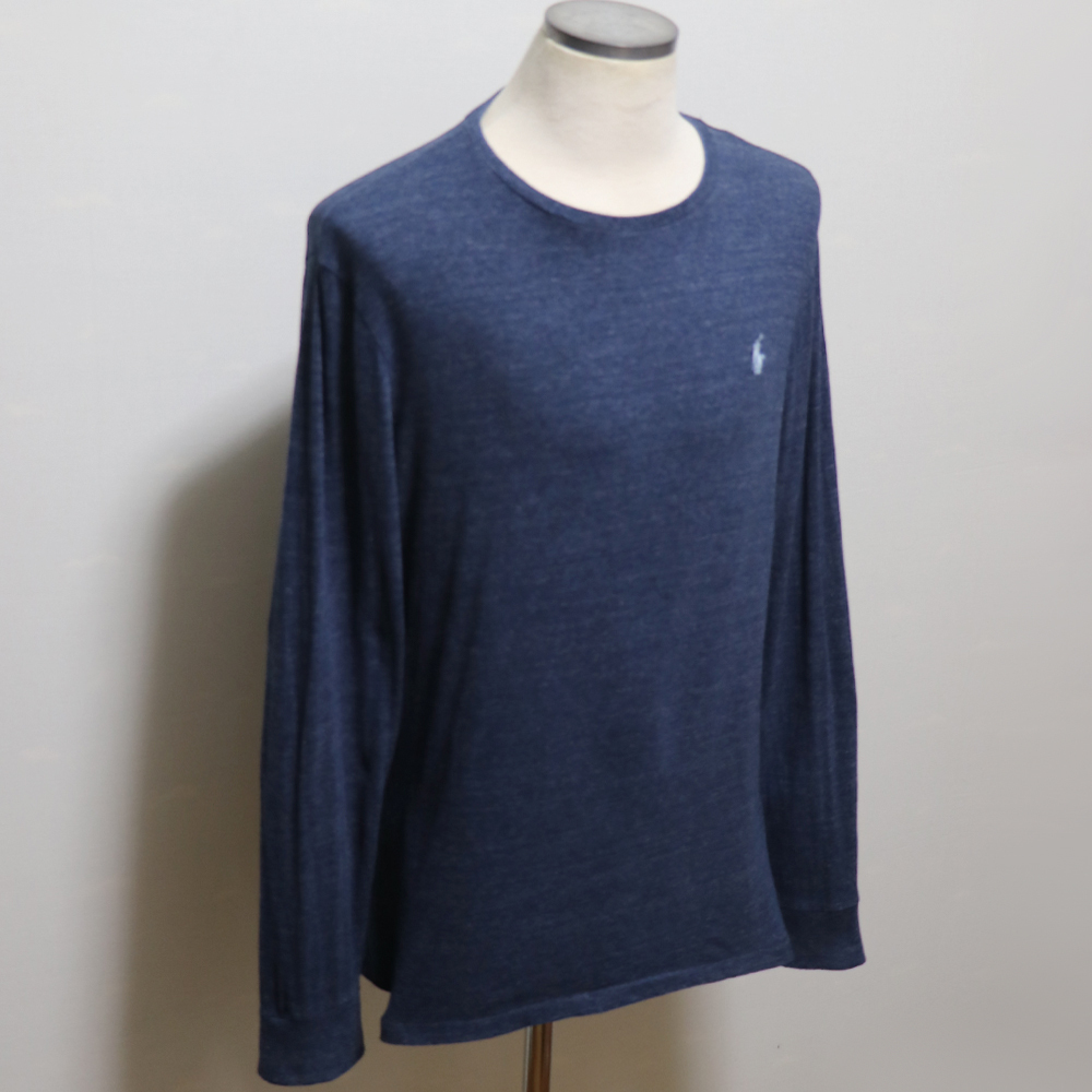 アメリカ購入 美品 POLO RALPH LAUREN ポロ ラルフローレン クルーネック ロングTシャツ杢紺 SAXポニー L サイズです。