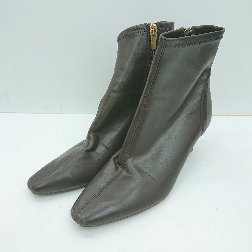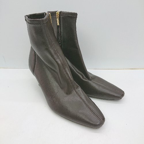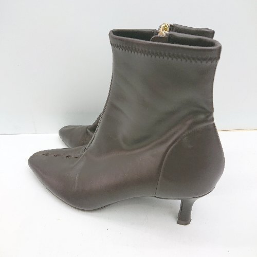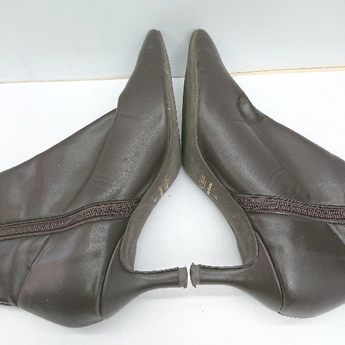 ■ LE TALON ル タロン スクエアトゥ 内側ファスナー ショート丈 ブーツ サイズL ブラウン レディース E