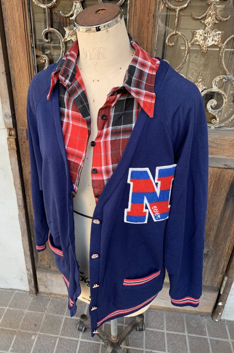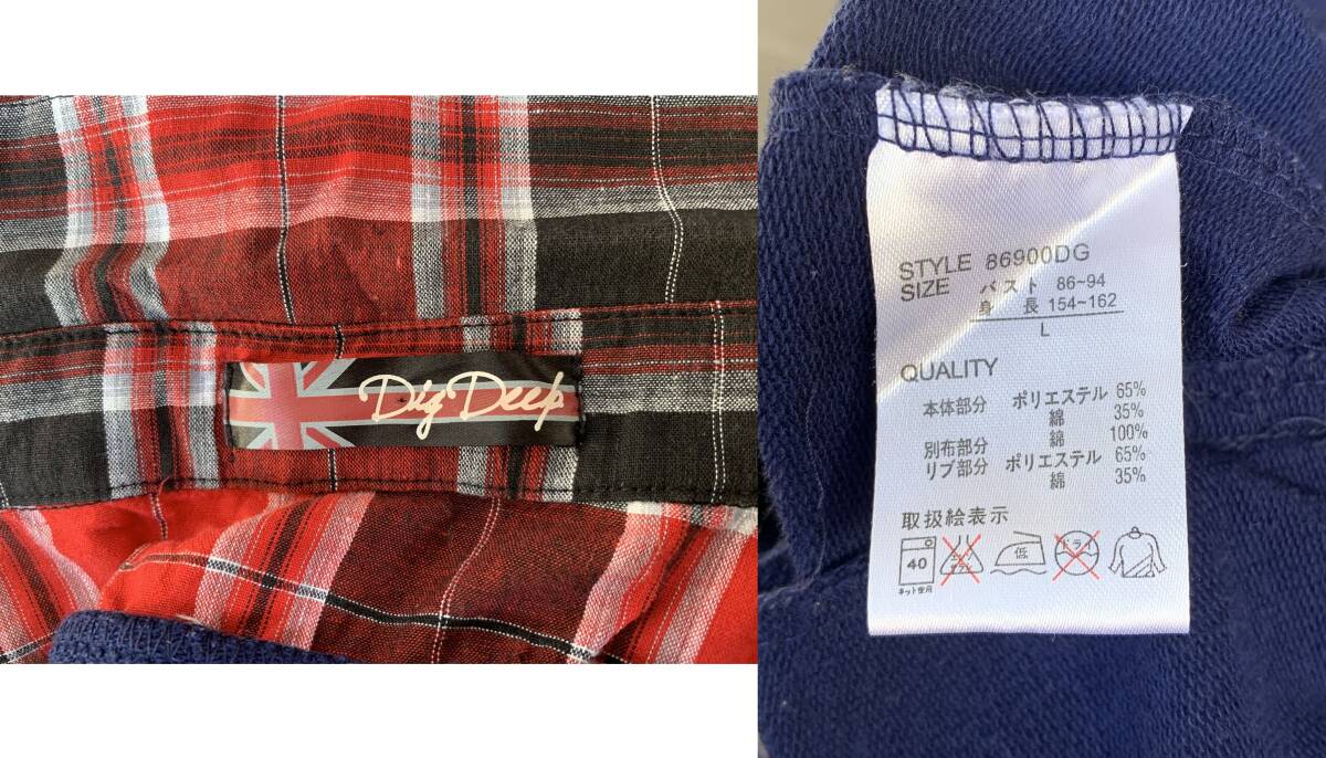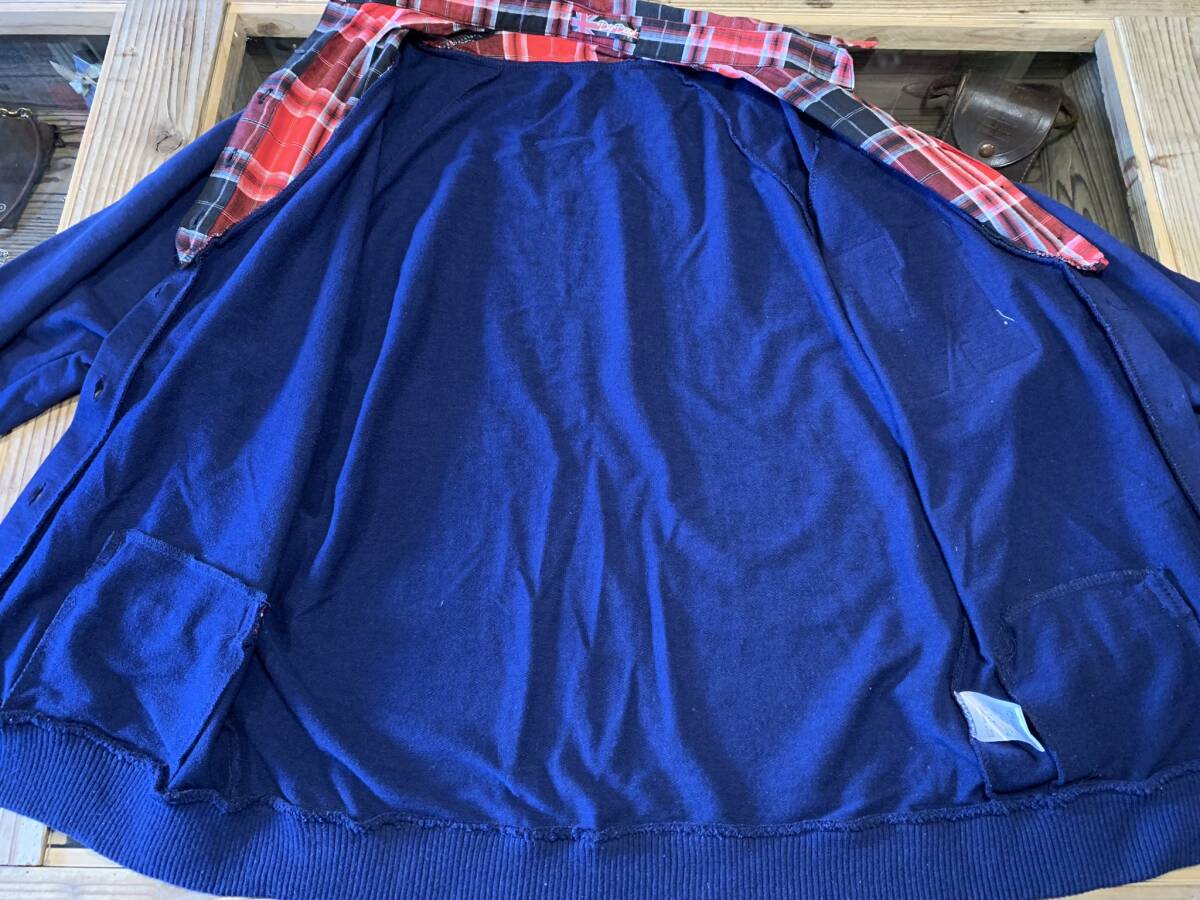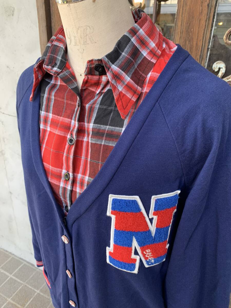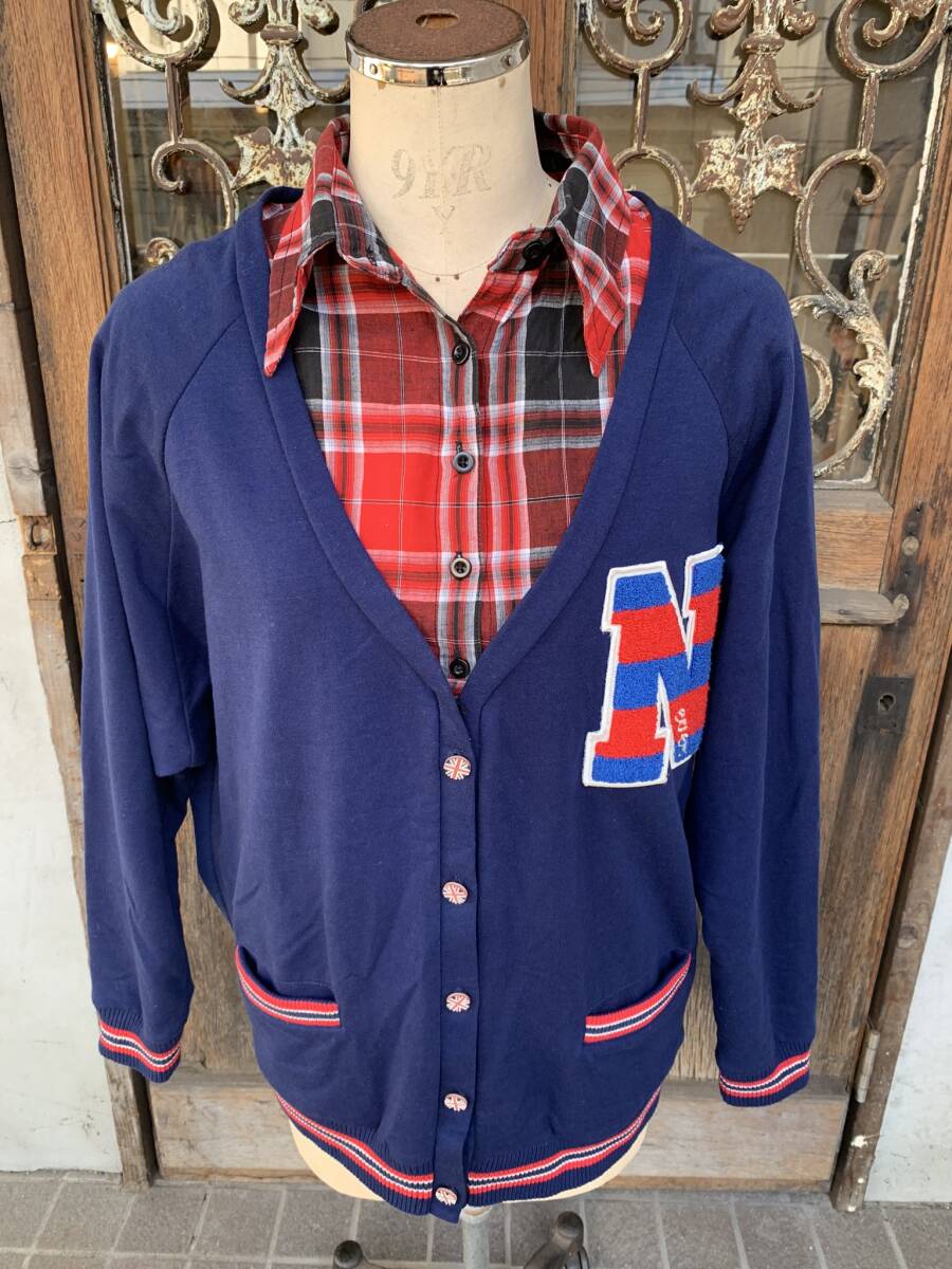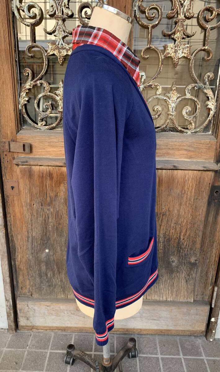 ★Dig Deep★えり付き★カーディガン★ラグラン★ネイビー★チェック★レディース★サイズL★