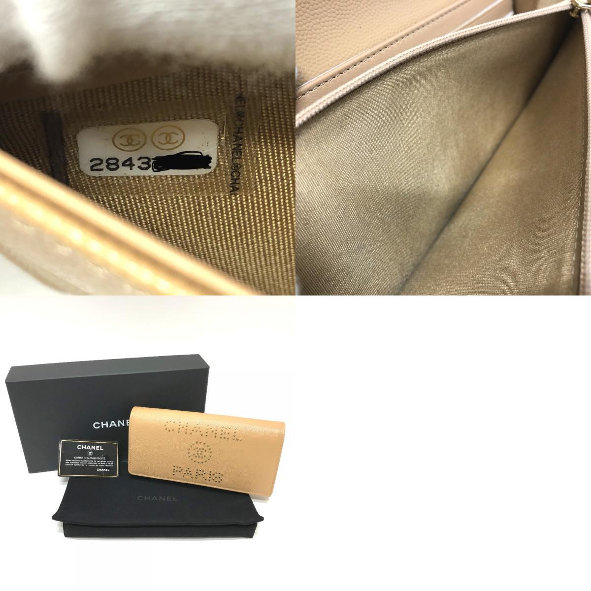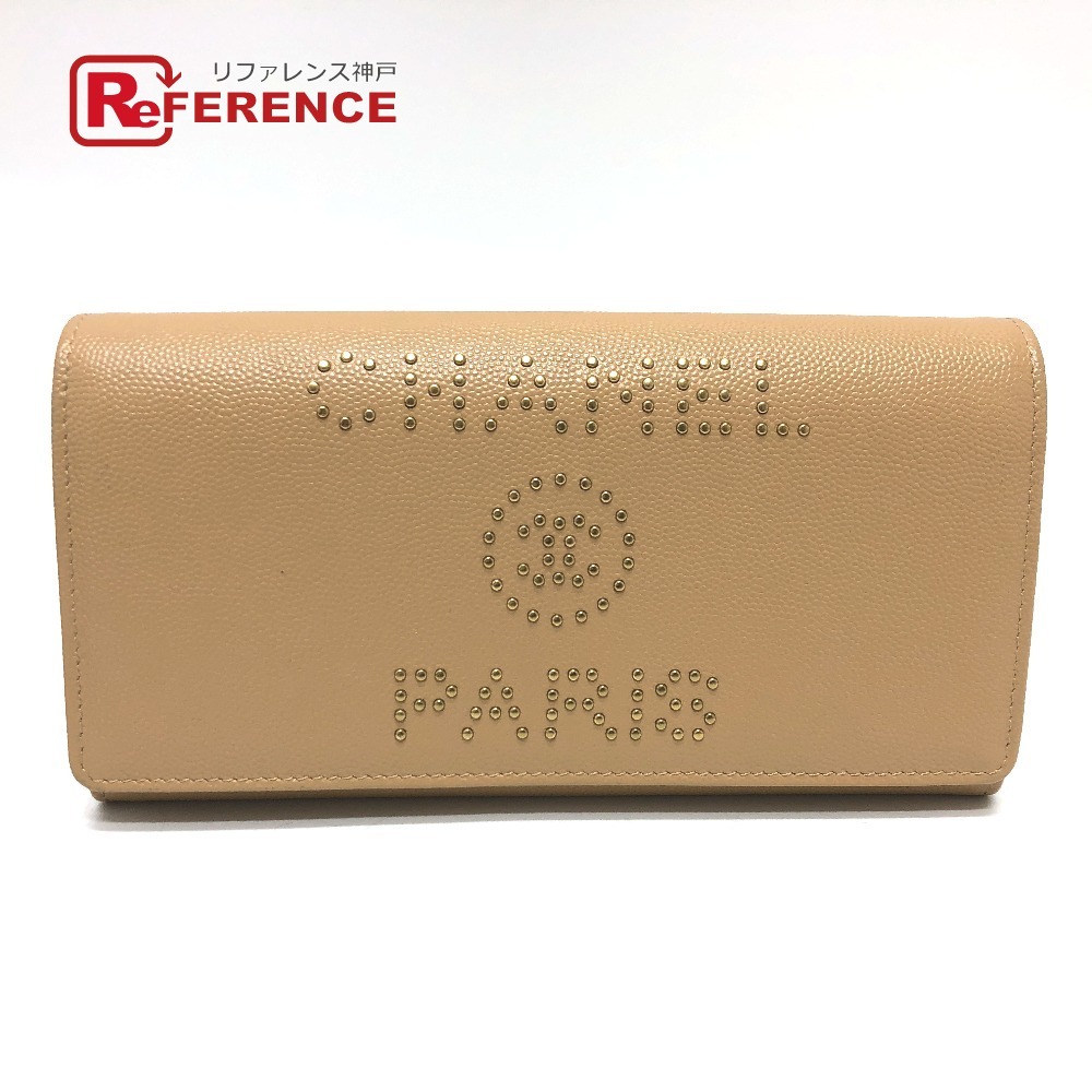CHANEL シャネル スタッズ ロゴ 2つ折り ロングウォレット 長財布 ベージュ レディース【中古】