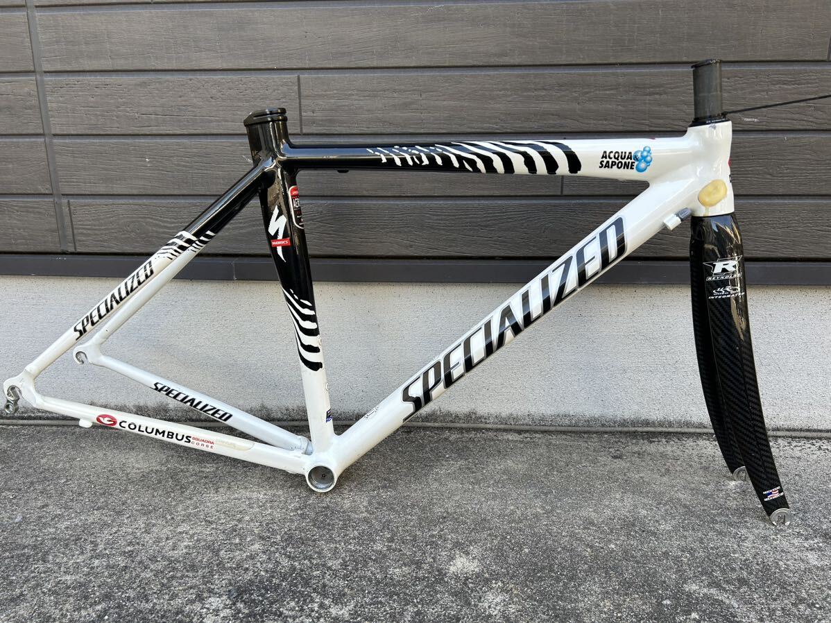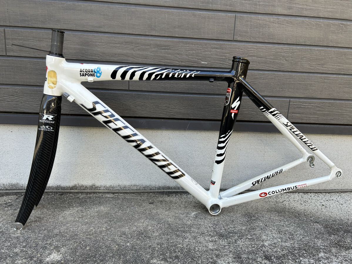 2002ビンテージフレーム『スペシャライズド マリオ・チッポッリーニ アクア・エ・サポーネ s-works Eファイブ ゼブラ』芯×トップ470mmアルミフレーム×カーボンフォークの出品です。