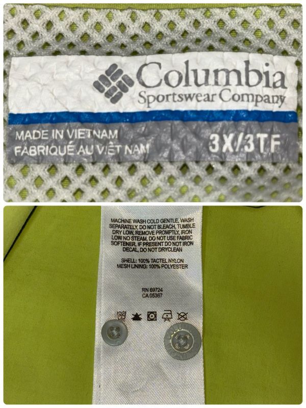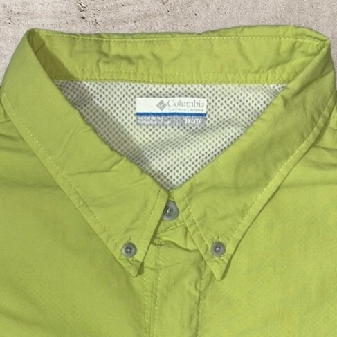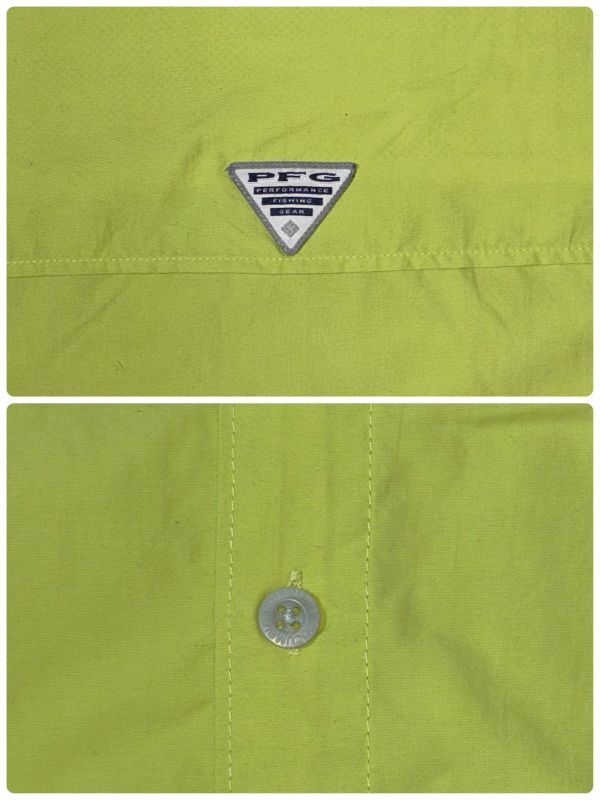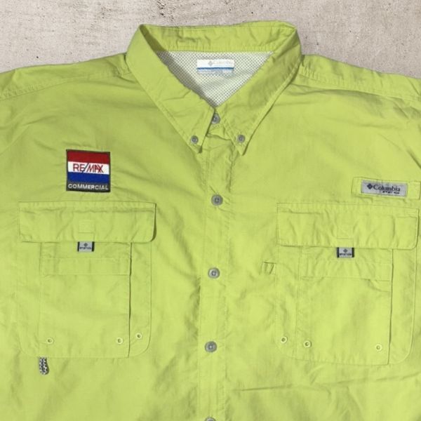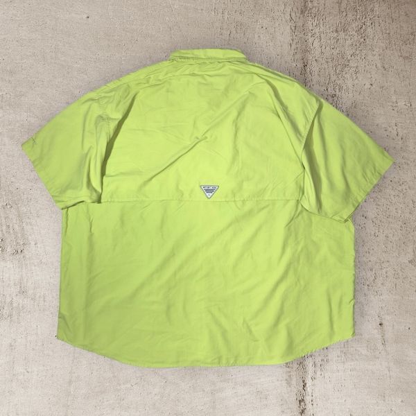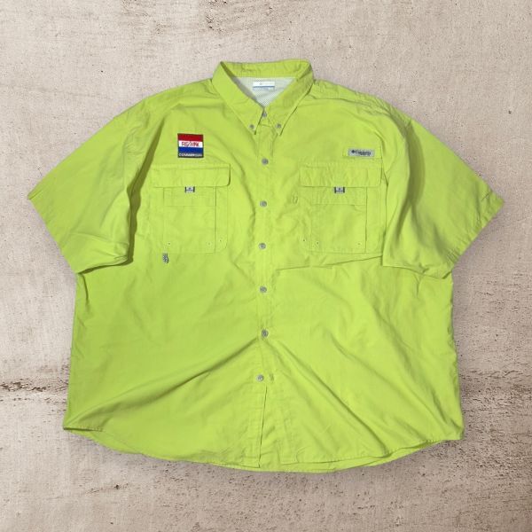 ★BIGサイズ★REMAXワッペン★Columbia PFG 半袖BDシャツ 3Xグリーン系 ピスネーム ベンチレーション 刻印ボタン コロンビア クリーニング プレス済み USED 1311