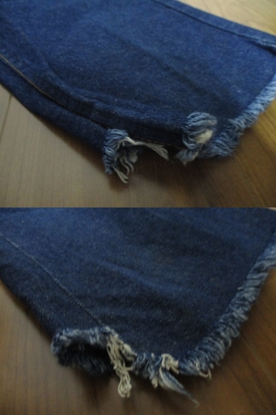 | 商品説明 | ●自己紹介欄ご覧ください。24時間以内に商品送付先のご連絡、3日以内にお支払厳守が取引条件になります。厳守できない方、即落札者削除とブラックリスト登録します。ご了承ください。 ●サイズ:W32 ●実寸(素人採寸になりますので、多少の誤差はご了承下さい):ウエスト(平置き):約39cm、総丈(前面の裾最長部まで):約58cm、股下(裾最長部まで):約31cm、裾幅:約22cm ●カラー:インディゴ ●素材:コットン ●アメリカ製 ●中古品です。着用に伴う若干の使用感、小汚れ、薄汚れがございますが、ご使用に問題となる大きなダメージはございません。カットオフの仕方がアバウトなため、前後の丈が若干異なりますその他状態等は画像でご確認ください。 ●自己紹介、注意事項をご覧の上、納得し、画像、商品説明で商品を理解できる方のみご検討ください。中古、年代物古着に理解のない方の入札はお断りします。 ●0524 | |