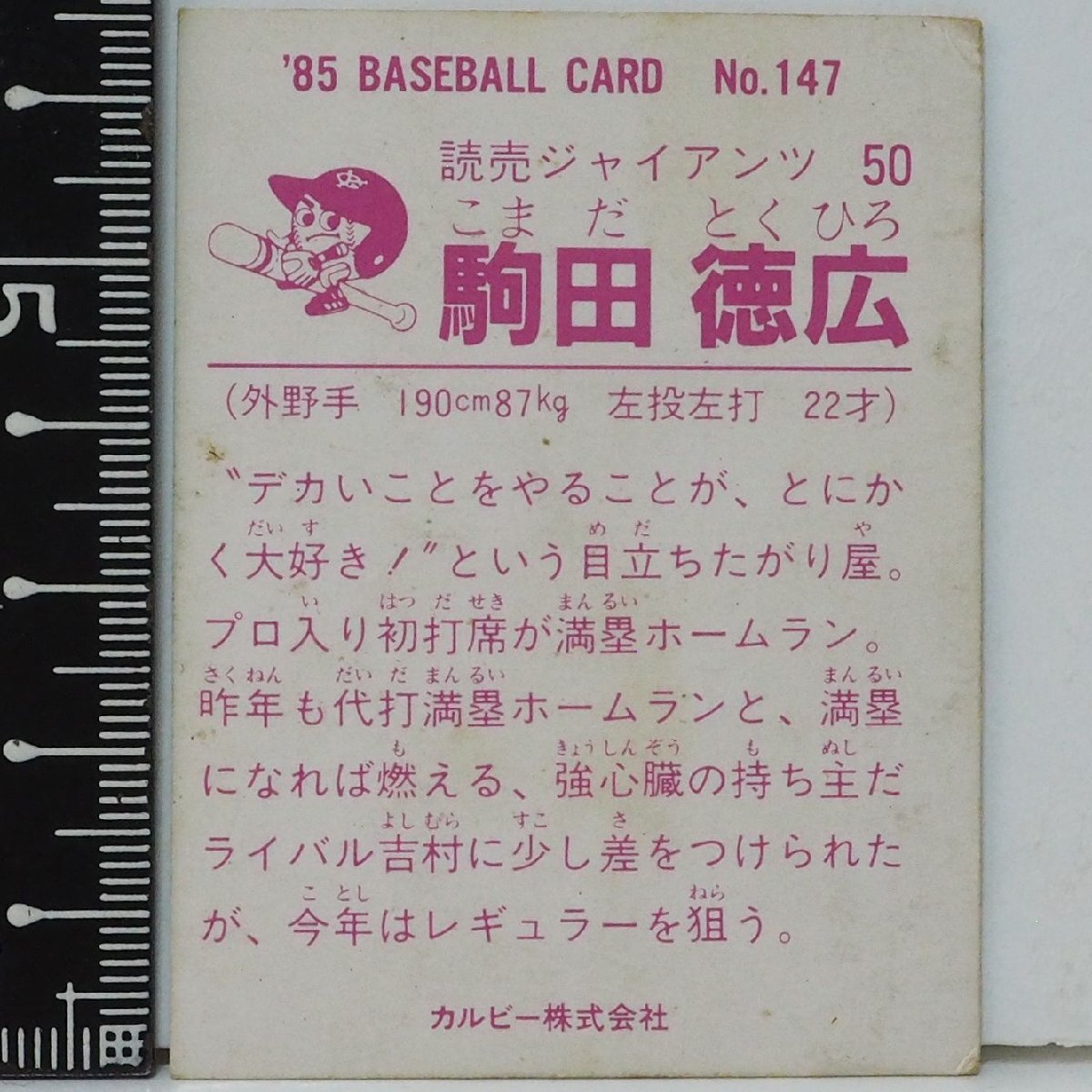 85年 カルビー プロ野球カード No.147【駒田 徳広 外野手 読売ジャイアンツ巨人】昭和60年 1985年 当時物 Calbee おまけ 食玩 BASEBALL中古