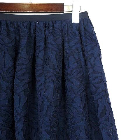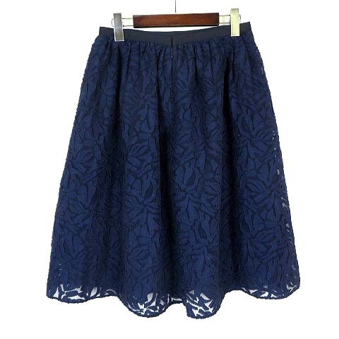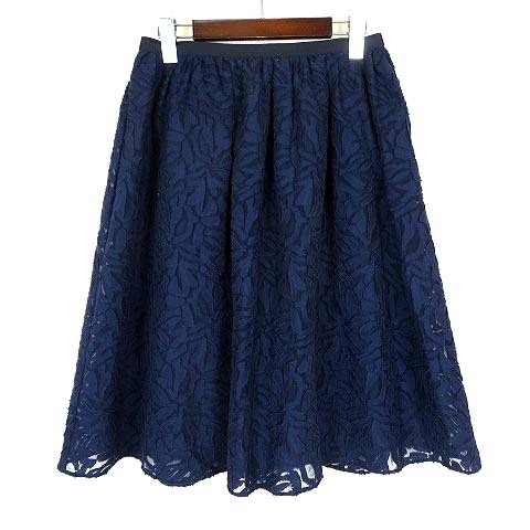 ロートレアモン LAUTREAMONT ドロワット Droite スカート フレアスカート 総柄 レース 刺繍 シースルー ギャザー 透け感 ひざ丈 L 3 紺