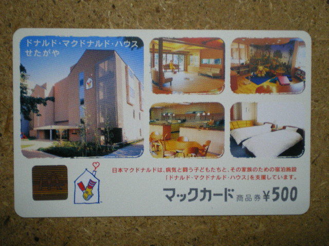 mcdo・0707 ドナルド・マクドナルド・ハウス せたがや 未使用 500円 マックカード