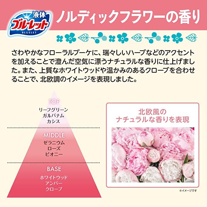 ●ナチュラルなノルディックフラワーの香りでトイレをやさしく彩る北欧風タンククリーナー4個とスーパーミントの香り2個の合計6個セットです。