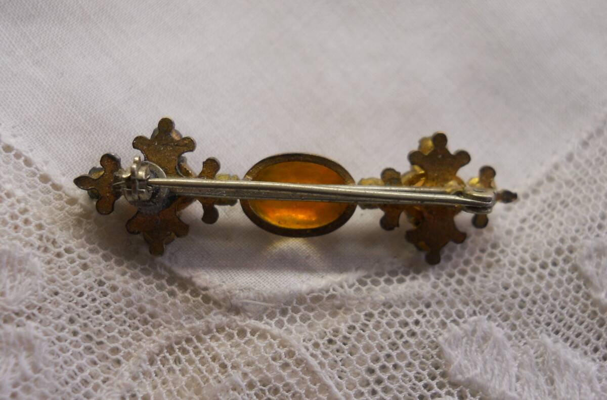 後年のドラゴンズブレス・ジュエリーはシンプルなデザインのものが多いですが、こちらのブローチはヴィクトリアン・ジュエリーらしい、繊細で美しいデザインのブローチです。