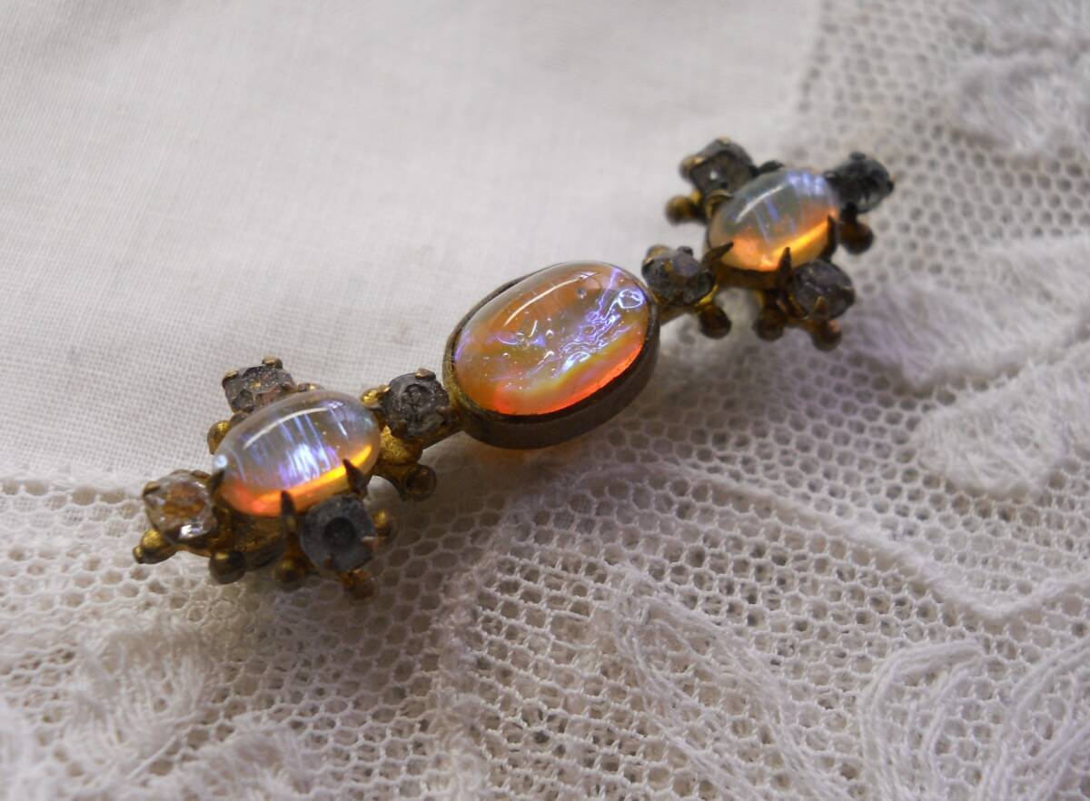 英国アンティーク ヴィクトリアン 幻想的 ドラゴンズブレスとペースト 古硝子 ブローチ