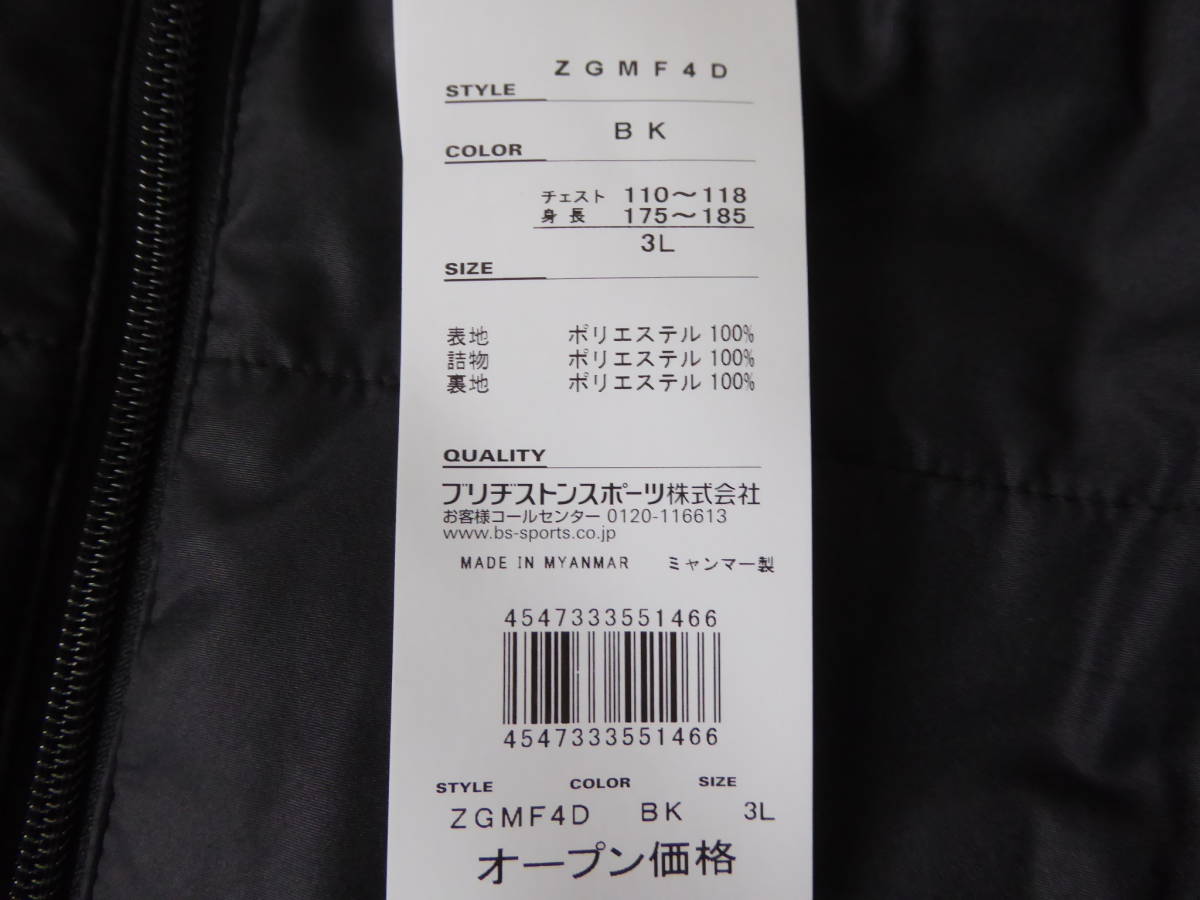 BRIDGESTONE GOLF ブリヂストン ゴルフ 撥水 暖か 中綿入りブルゾン ジャケット 3L 濃灰黒