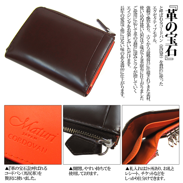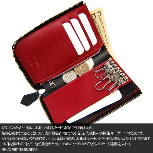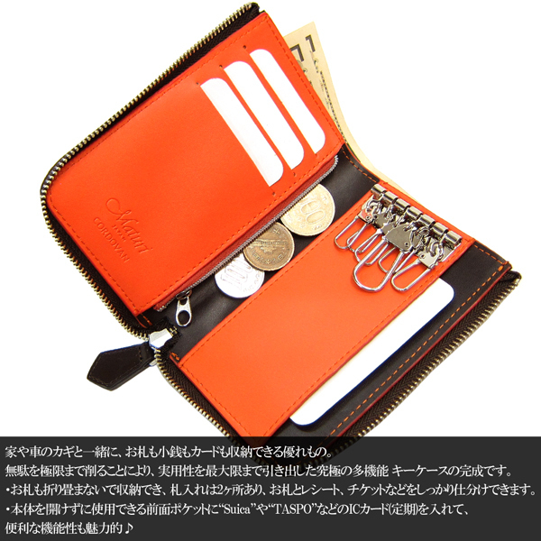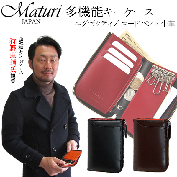 元阪神タイガース、狩野恵輔氏推奨ブランド ◆Maturi商品は狩野氏が行なう、講演・少年野球教室・イベントなどで、提供させて頂いております。 財布のいらないキーケースが登場しました。 家や車のカギと一緒に、お札も小銭もカードも収納できる優れもの。 無駄を極限まで削ることにより、実用性を最大限まで引き出した究極の多機能 キーケースの完成です。 お札も折り畳まないで収納でき、札入れは2ヶ所あり、お札とレシート、チケットなどをしっかり仕分けできます。 本体を開けずに使用できる前面ポケットに、SuicaやTASPOなどのICカード(定期)を入れて、便利な機能性も魅力的。 ■カラー:ブラック×レッド、ブラウン×オレンジよりお選び下さい。 (落札時、オーダーフォームにてご希望のカラーをご連絡下さいませ。ご連絡がない場合は、当店でカラーを選択させて頂きます。) ■サイズ:(約)縦9cm×横12.5cm、マチ2cm (実寸につき誤差はあらかじめご了承ください) ■仕様:ファスナー開閉式、外側/カード×2、内側/キーフック×6、札入れ×2、カード×3、小銭入れ×1、フリーポケット×2 ■素材:外側/馬革(コードバン)、内側/牛床革、PU ■付属品:Maturi専用BOX ■新品・未使用 --革製品について-- ・製作過程により多少の傷、汚れ、縫い目が粗い、塗装にムラ、接着剤跡等がある場合が御座います。 ・天然素材の商品は、自然由来の素材のため革には細かなシワや傷跡・トラ等が存在する場合があります。 ※シワなどは、動物の生育環境や年齢、個体によって異なる、革の特性です。 ・商品の仕様・デザインは、製品向上の為に予告なしに変更になる場合がございます。 ・ご覧のモニターやブラウザの設定・照明等により、画像と実物の色合いが、若干異なる場合が御座います。 | |