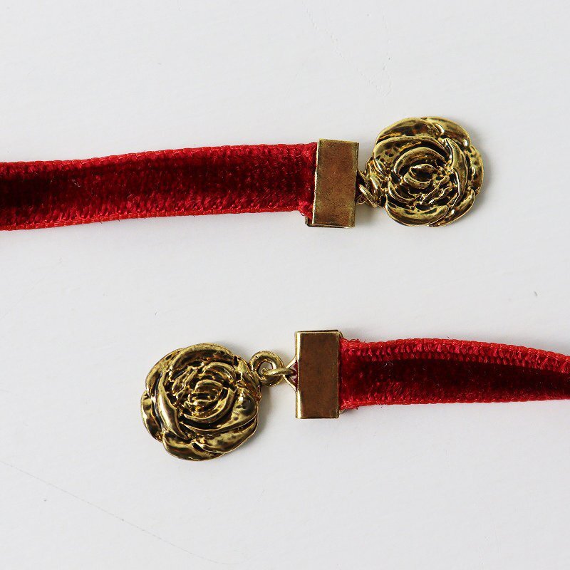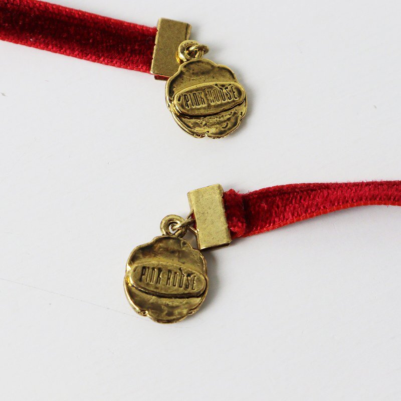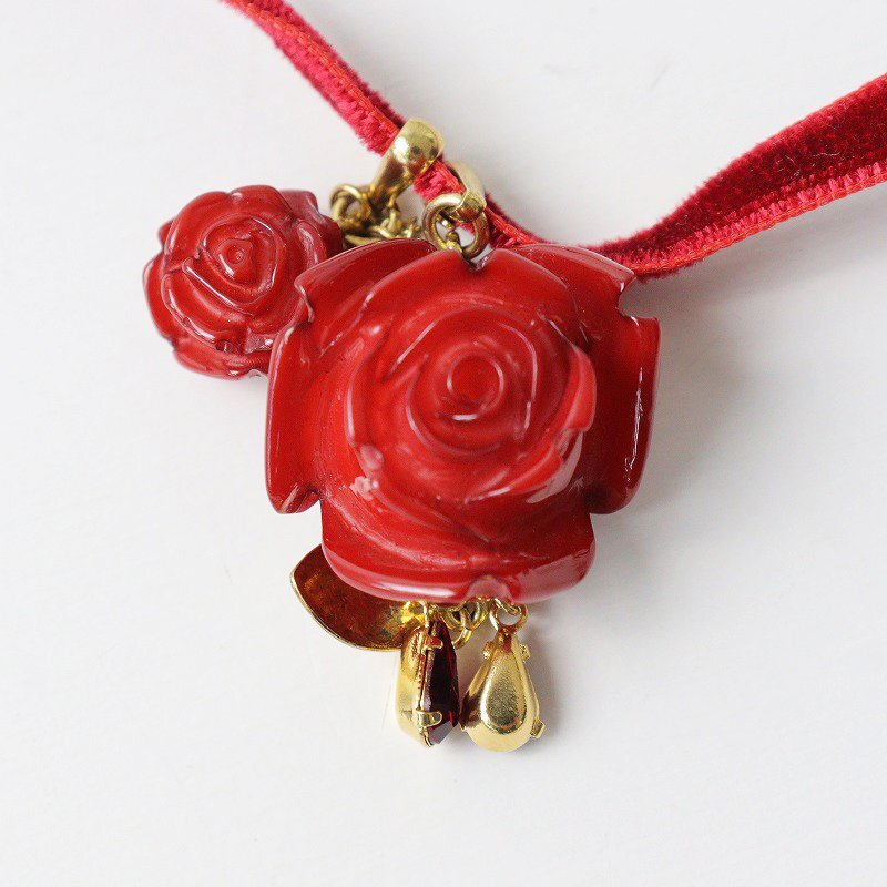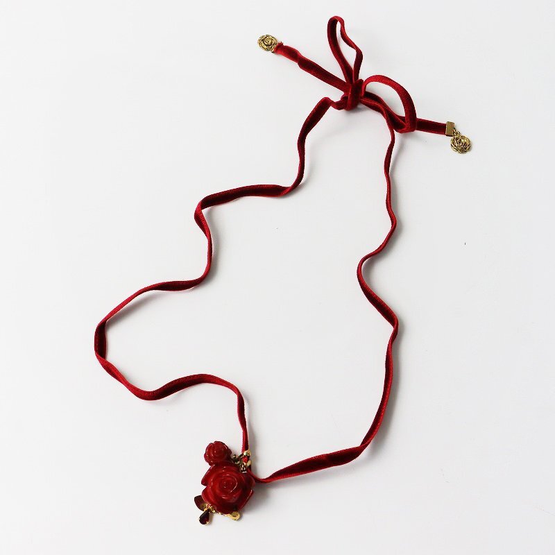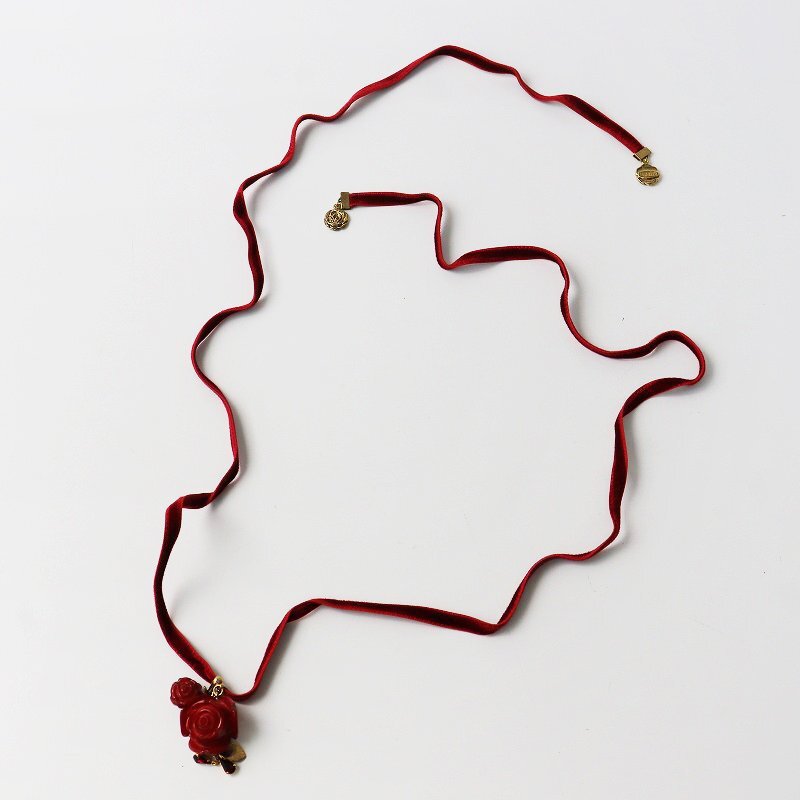 美品 ピンクハウス PINK HOUSE ローズモチーフ ベロアロングネックレス/レッド ベルベット 薔薇 バラ アクセサリー 小物【2400013794275】