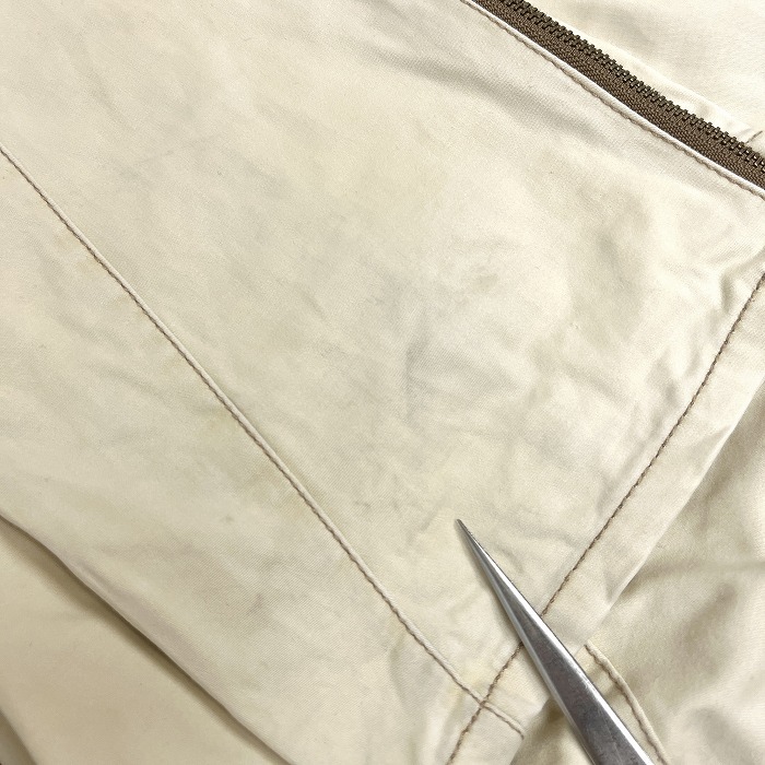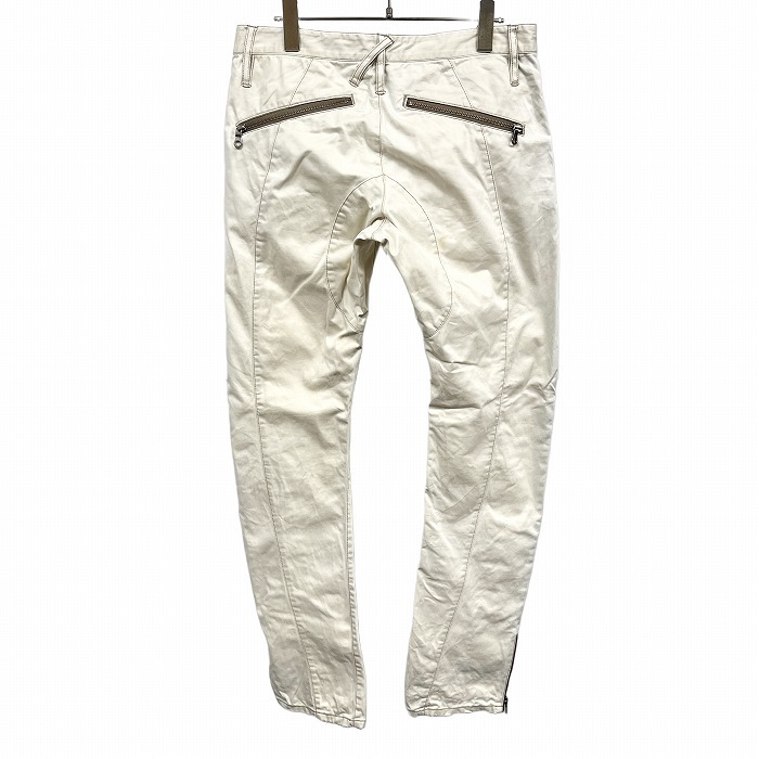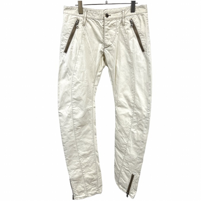 商品状態・ディテールなど | (※実測寸法など、多少の誤差はご容赦下さい。) (※商品は衣類の場合は全て畳んで保管しており、服飾雑貨も靴以外は必要に応じ畳んで保管しております。保管や梱包による畳み皺などはご了承下さい。) ●気になったダメージの場所と種類: ・所々:- ・全体:- ・フロントポケット:- ・バックポケット:- ・ヒップ:右ヒップに薄シミの箇所前身頃:前立て近くに薄小シミの箇所 ・腿:- ・膝:- ・脛:- ・裾:薄黒い箇所 ・裏地:- ・内側:- ●その他ディテール:裾ジップ、無地 ●付属品など:- ●その他:- |