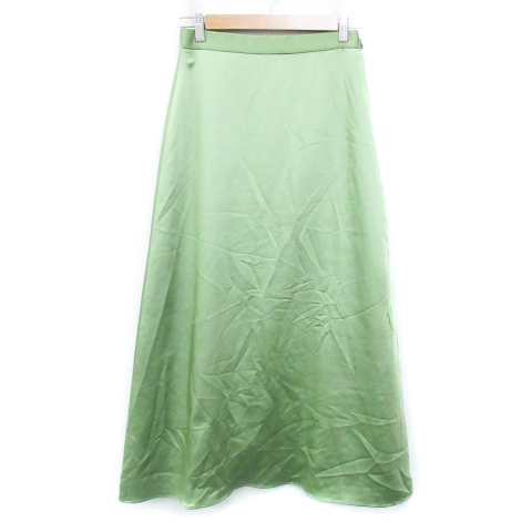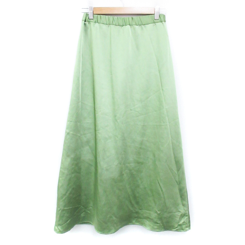 ジーナシス JEANASIS フレアスカート サテン ロング丈 マキシ丈 無地 F 黄緑 ライトグリーン /FF49 レディース