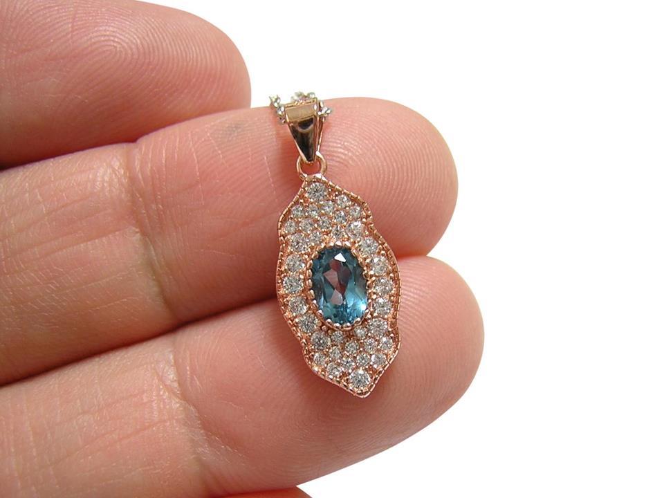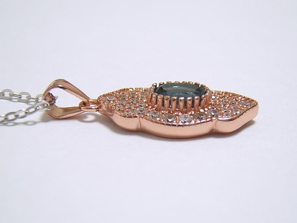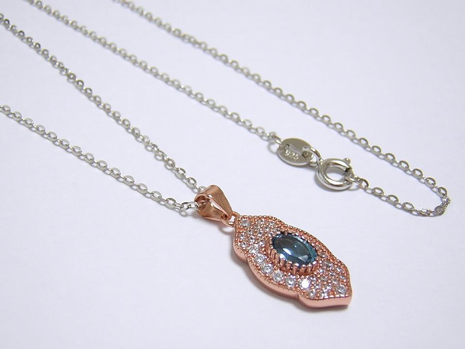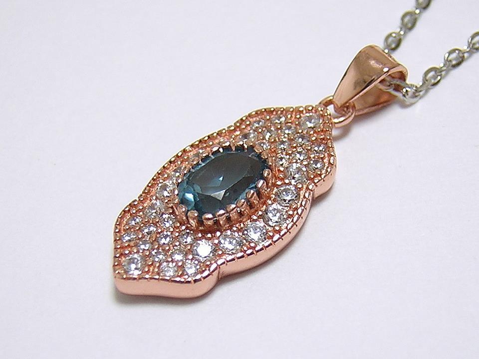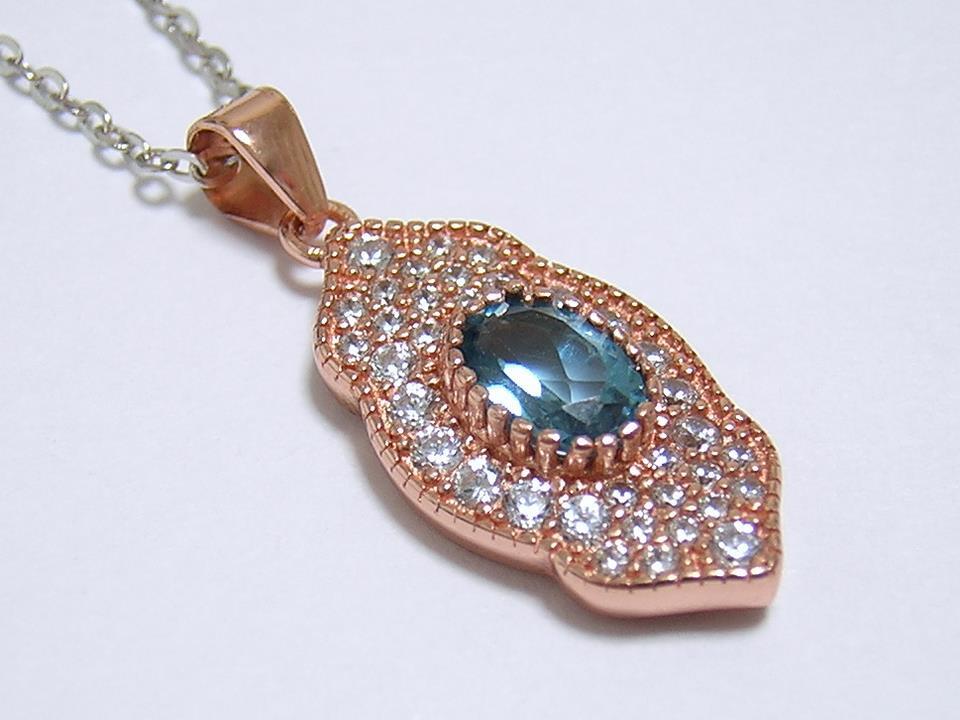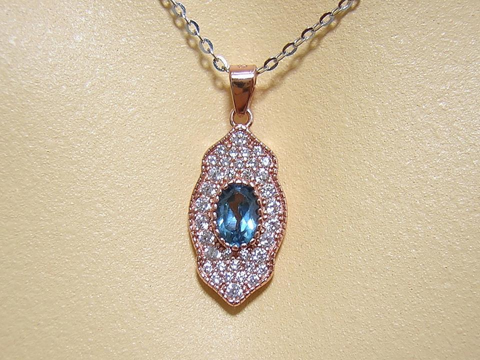 天然ブルートパーズとキュービックジルコニアを使用したペンダントネックレスです。