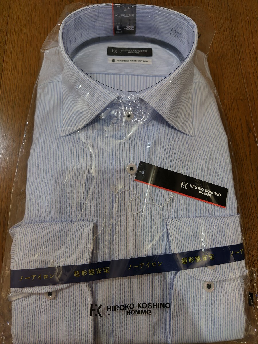 新品未使用タグ付 HIROCO KOSHINO 長袖 ワイシャツ 41ー82 薄ブルー ノーアイロン 超形態安定 綿100% 中国製 発送はゆうパック760円です 神経質な方の入札はご遠慮下さい ノークレーム、ノーリターンでお願い致します
