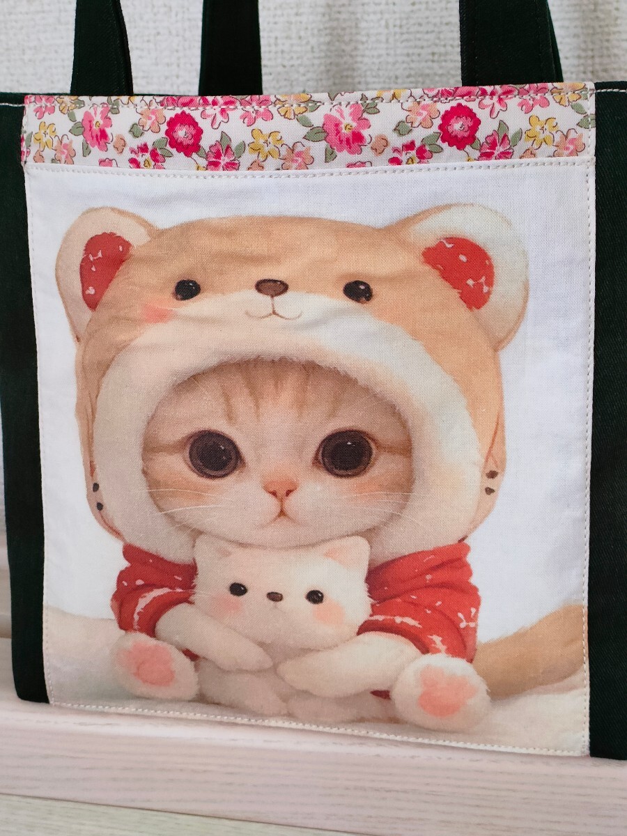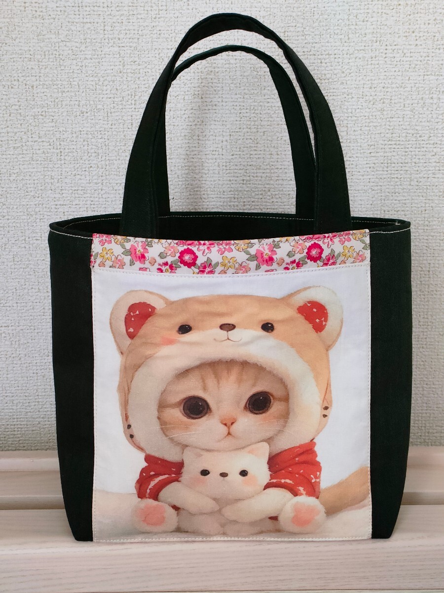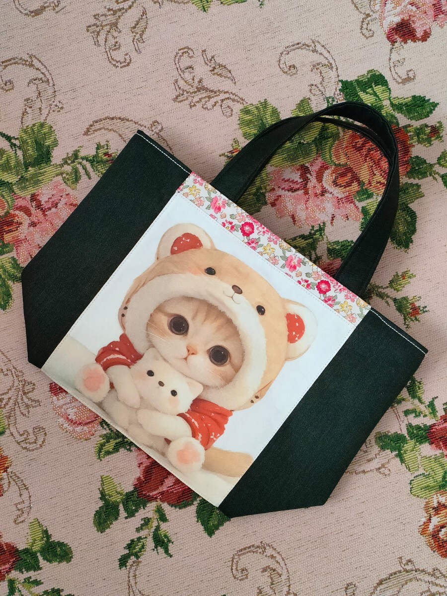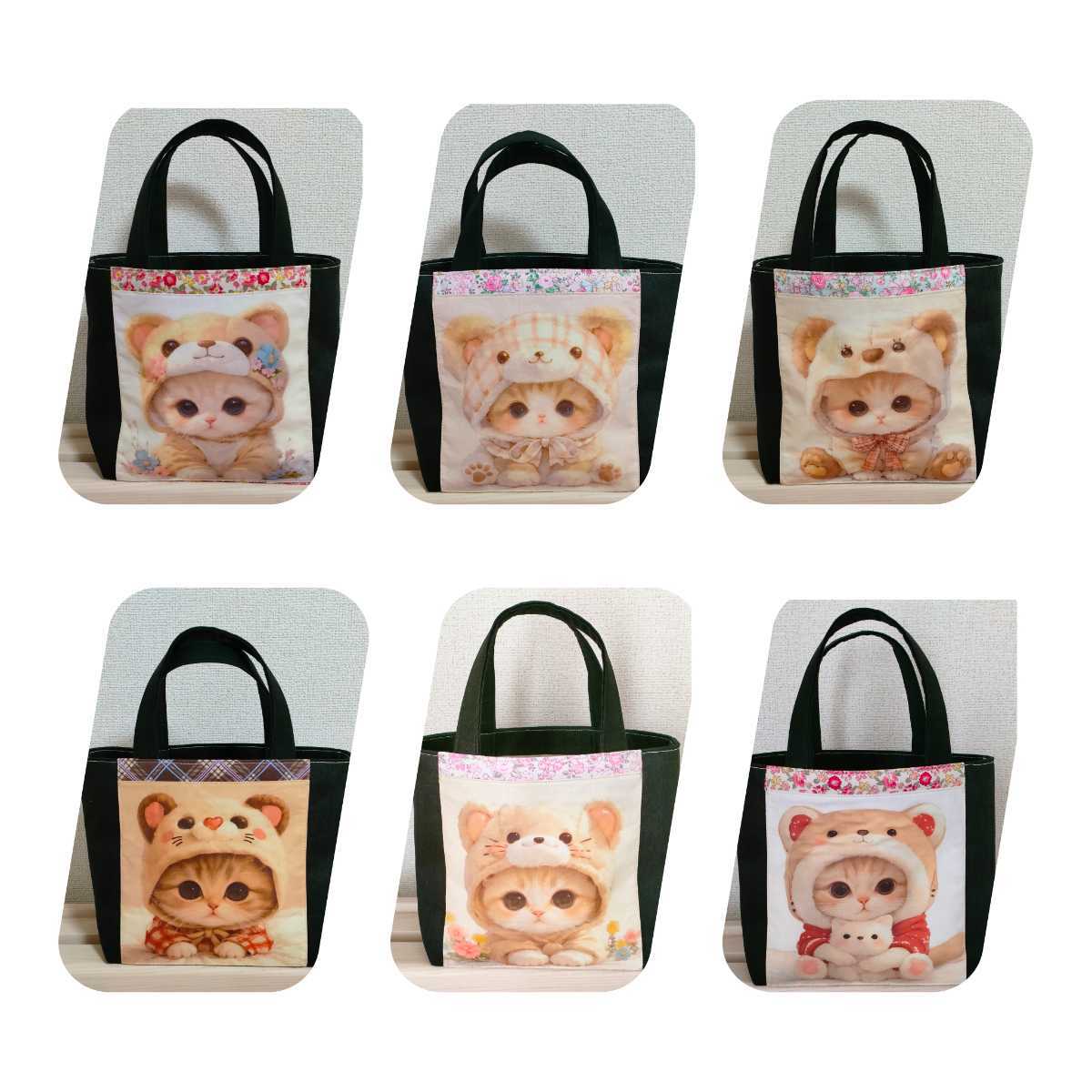 子猫ちゃんのきょとんとした幼い表情とふせが可愛いミニトートバッグはいかがでしょうか♪