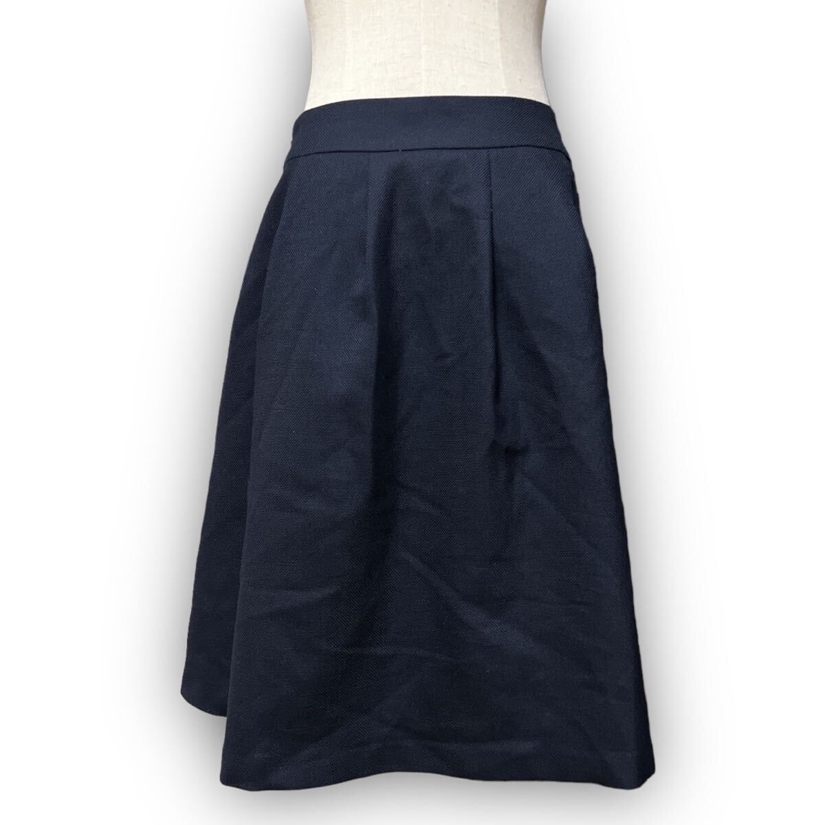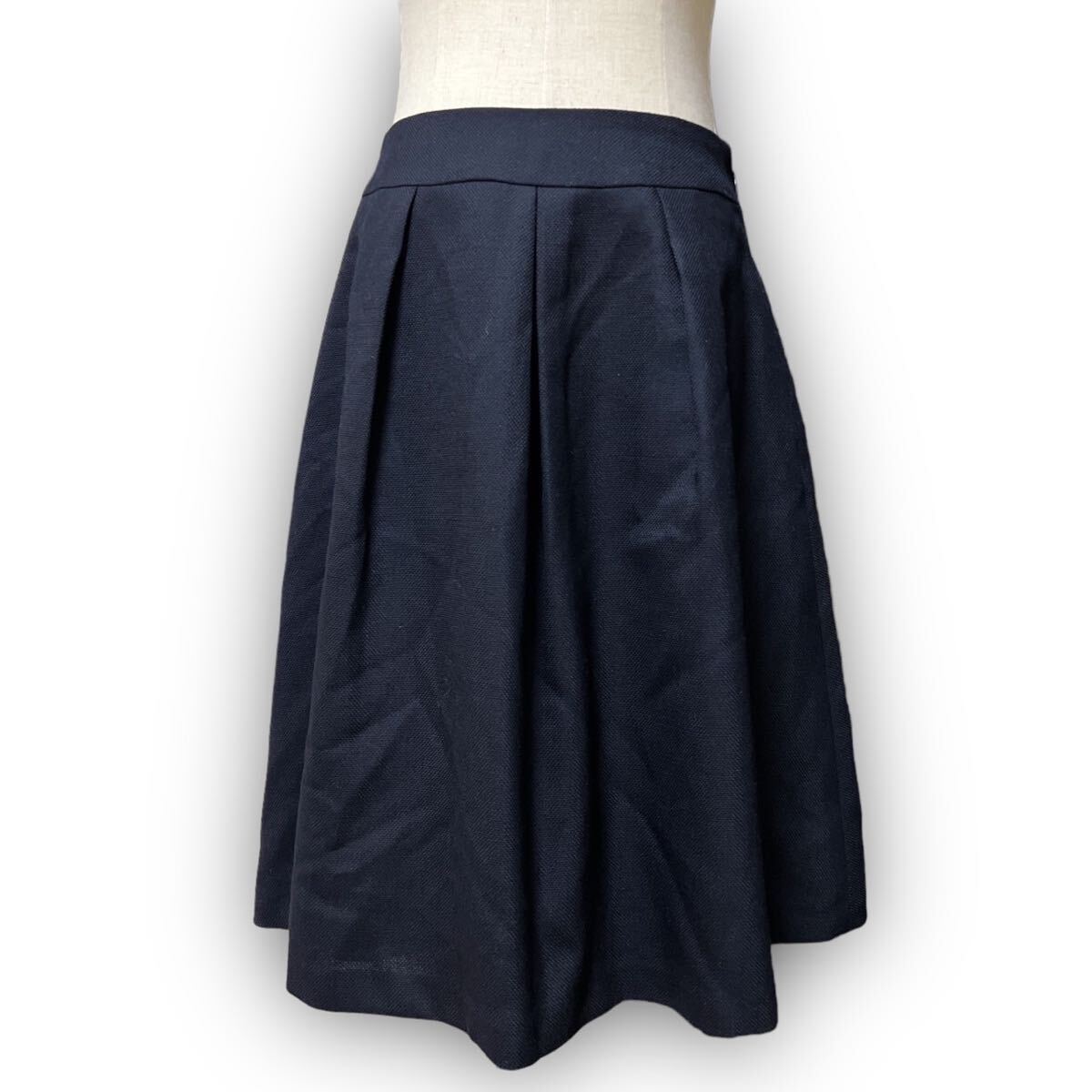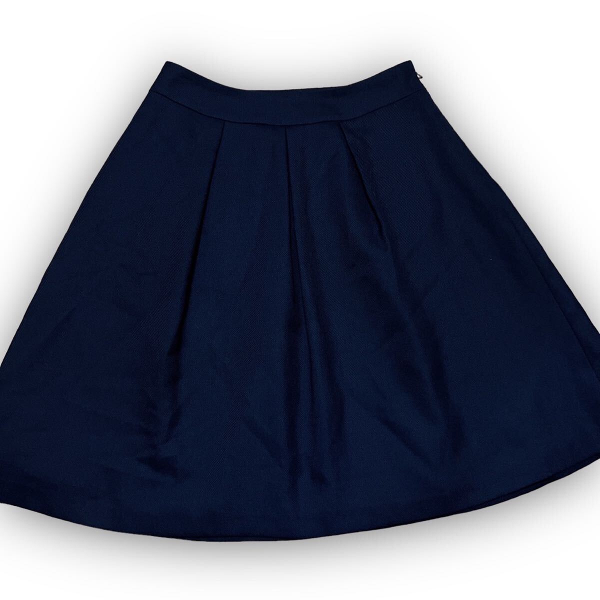 Y620★大人可愛い★SUIT SELECT スーツセレクト プリーツフレアスカート ミディ丈 ウール 1 Sサイズ相当 ネイビー レディース 万能