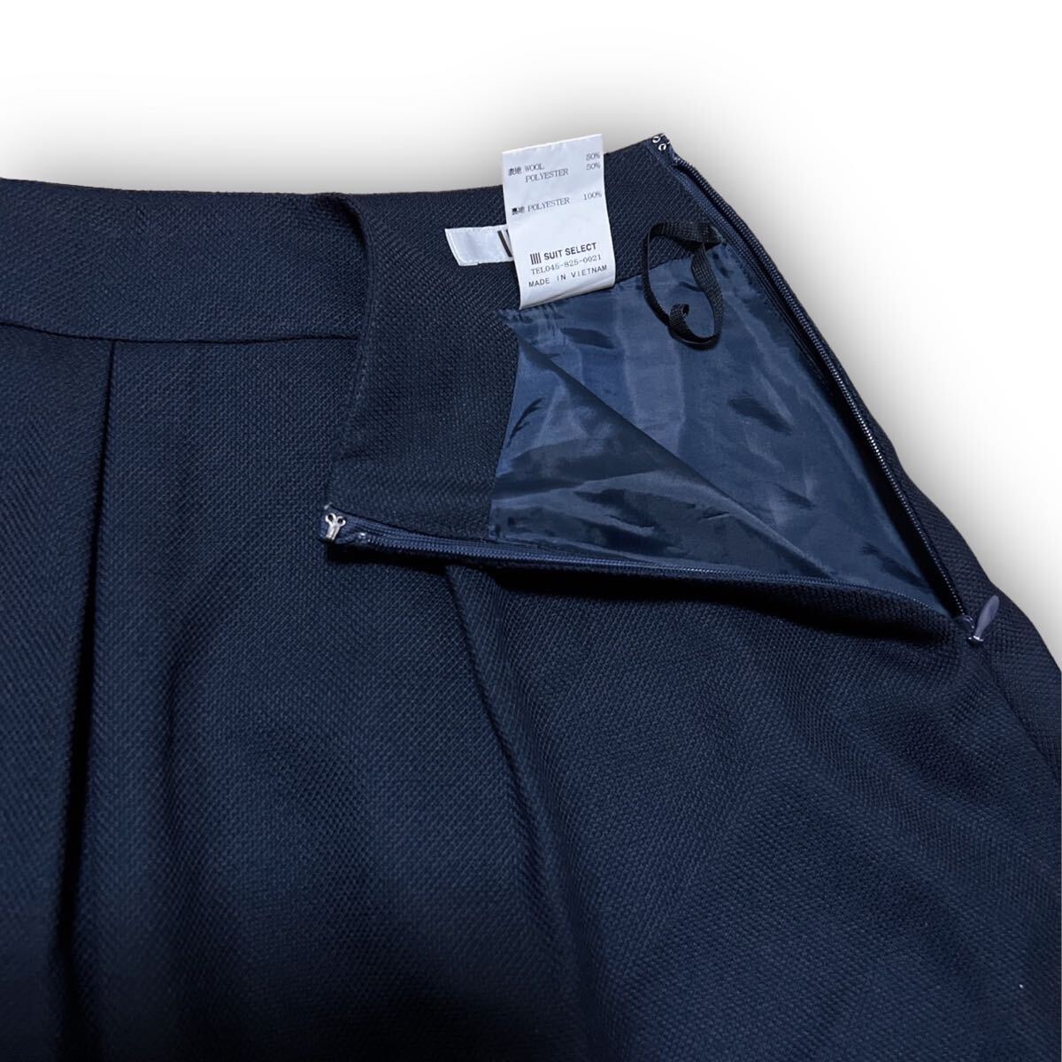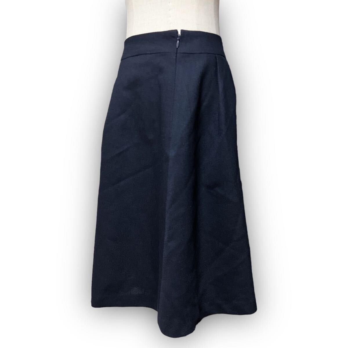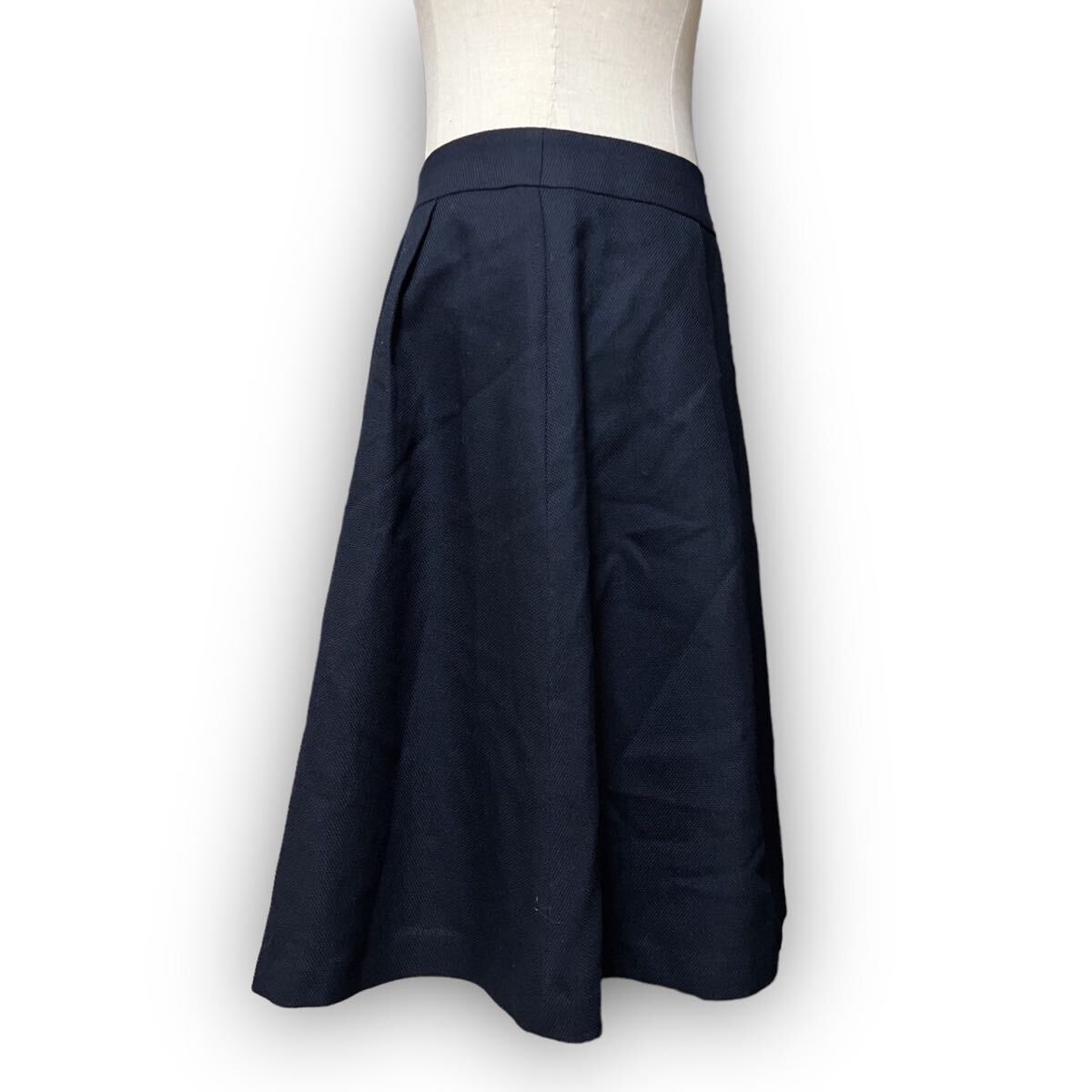 Y620★大人可愛い★SUIT SELECT スーツセレクト プリーツフレアスカート ミディ丈 ウール 1 Sサイズ相当 ネイビー レディース 万能