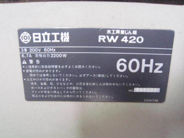 | 日立工機 木工用集じん機 RW420 三相200v No.1 | |