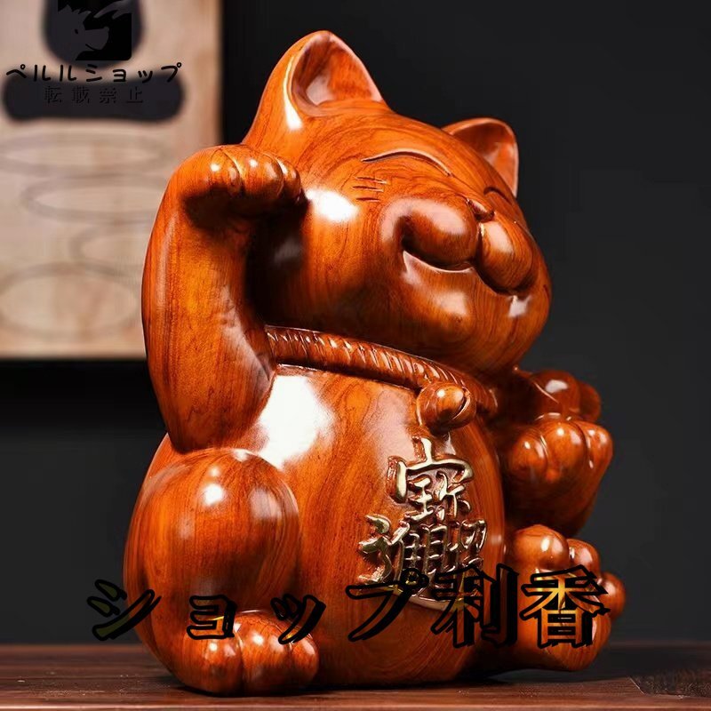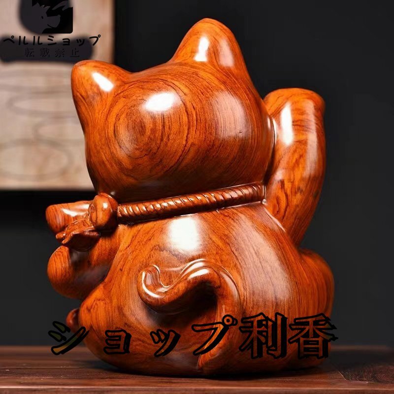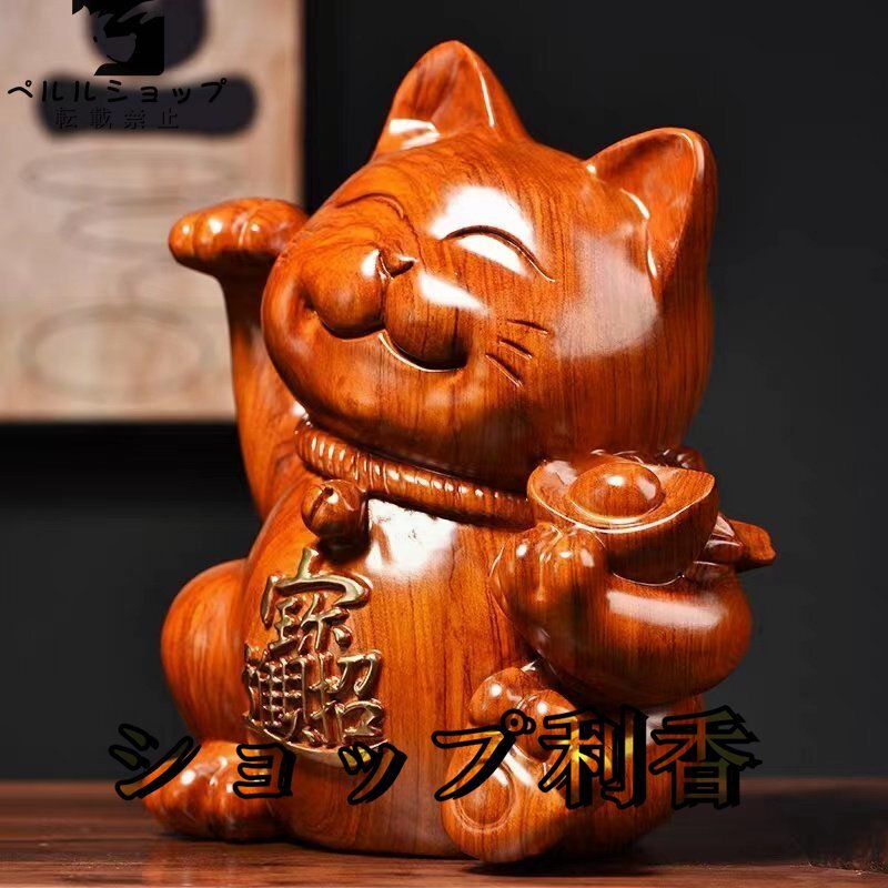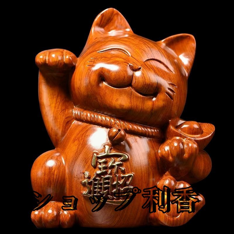 ★新作の花梨木彫 可愛い招き猫 玄関、客間の置物 招財