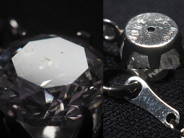 ルーペで見るとダイヤにインクルージョンと表面にわずかな傷、地金部分にスレや小傷が見られますが、大きく目立つような傷はなく、状態の良いお品物となっております。