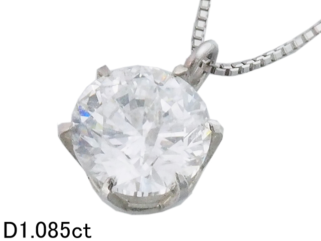 音羽屋■ G/I-2 ダイヤモンド/1.085ct Pt900/Pt850 1粒ダイヤ プチ ネックレス ソーティング付き 仕上済【中古】