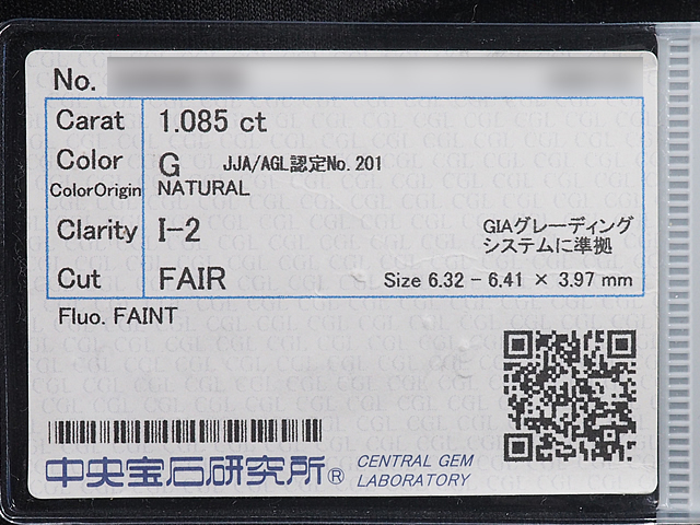 カラー【G】クラリティ【I-2】カット【FAIR】