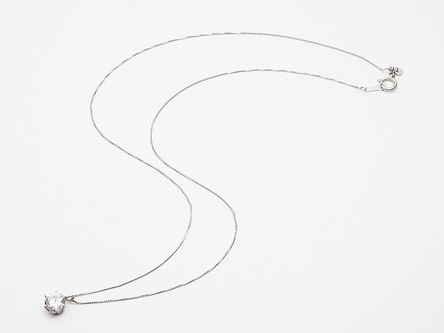 1粒ダイヤモンドの存在感をお楽しみ頂けます。シンプルで万能な1つは持っておきたいアイテムです。チェーンはスライドアジャスター付きでお好みの長さに調節可能です。