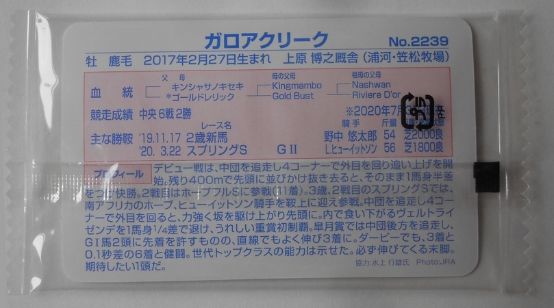 ◎まねき馬カード No.2239 ガロアクリーク(未開封)