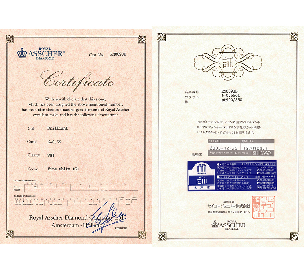 世界でただひとつ許された「ロイヤル」の称号を持つROYAL ASSCHER(ロイヤル・アッシャー)。1908年、その卓越した技術は史上最大のダイヤモンド原石「カリナン」を完璧なまでにカット・研磨するという世界的な偉業に結実。そんな近代ダイヤモンドの歴史と共に歩んだブランドの創業150周年を記念して作られたペンダント・ネックレスです。ラウンドブリリアントとプリンセスカットを組み合わせたシンプルなデザインが、輝きを放つダイヤモンドの美しさを引き立てます。