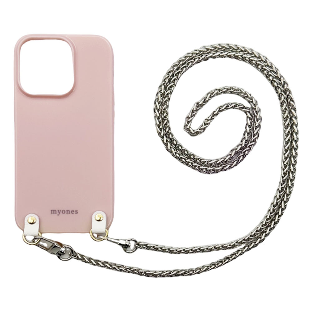 AQUOS R8 SH-52D(くすみピンク/シルバーB)チェーン ソフトケース スマホショルダー 肩掛け 首かけ 斜めがけ かわいい 韓国