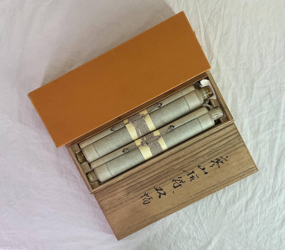 古い掛け軸は軸先を固定している接着剤が弱り、輸送途中の衝撃で軸先が外れてしまう場合がございます。