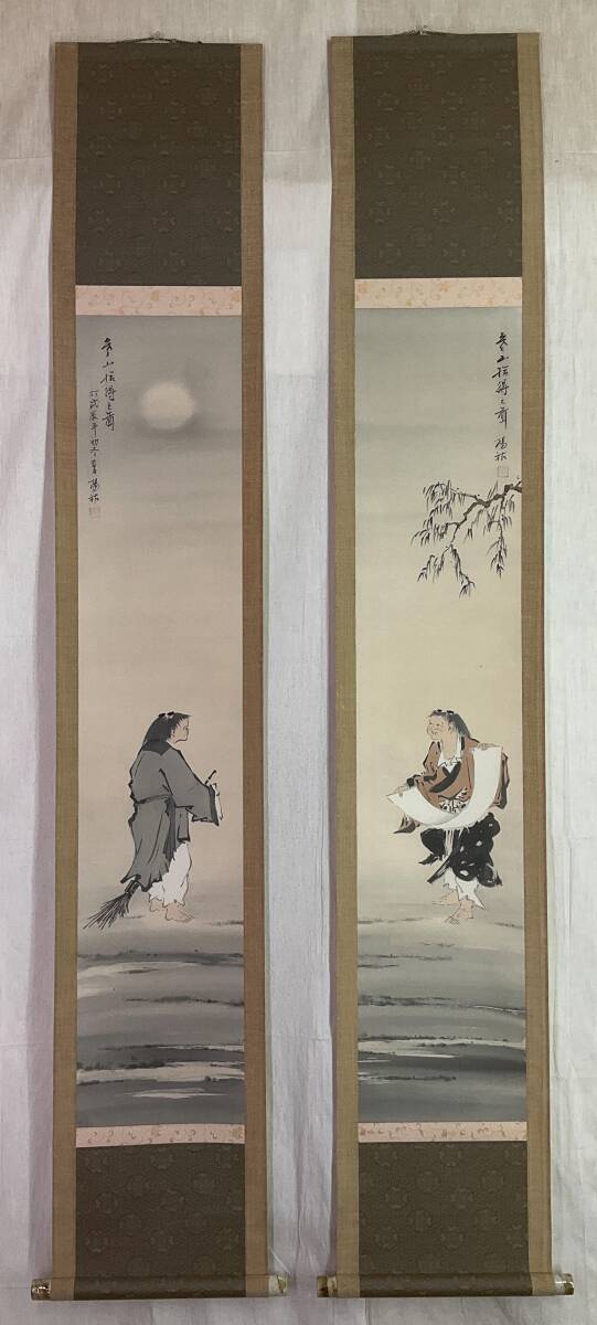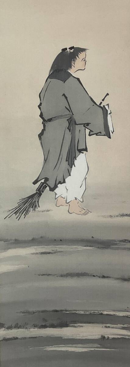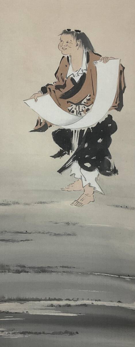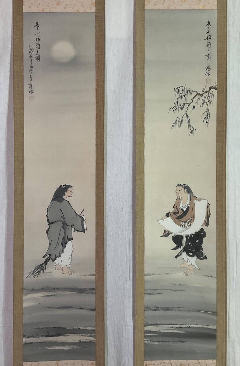 【真作】《掛軸》小出陽祐 寒山拾得 双福 共箱 日本画 愛知