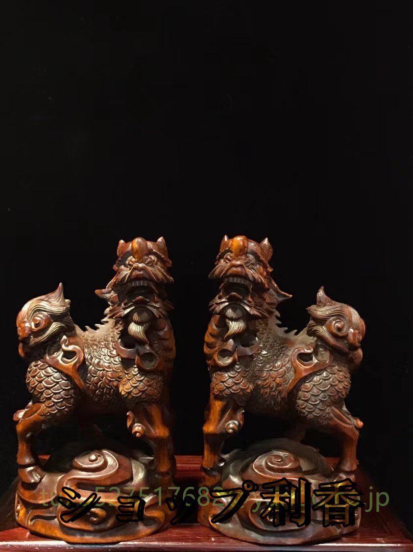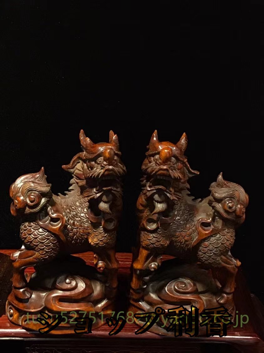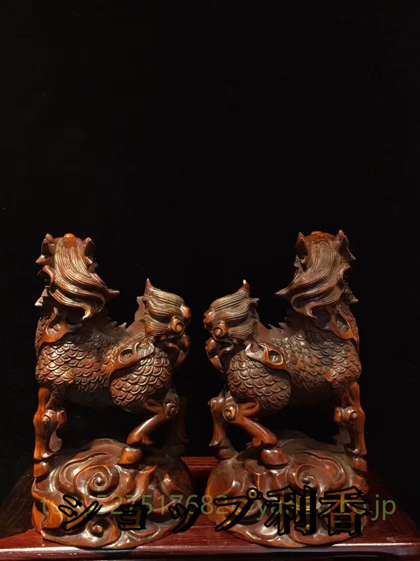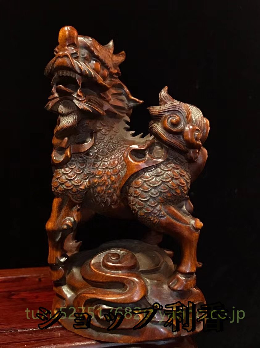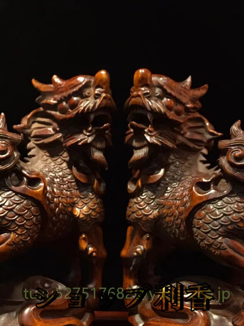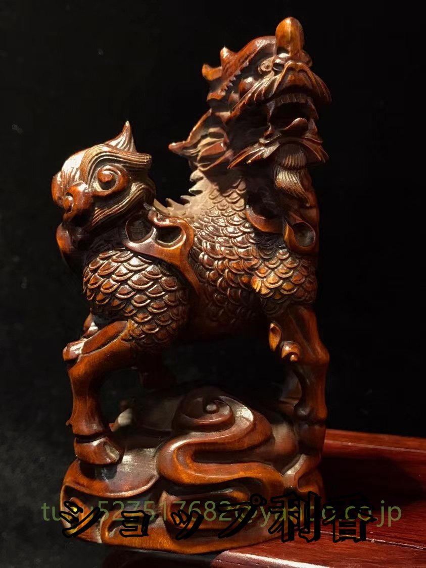 【縁起物】麒麟 置物 木彫り細密彫刻 木製 風水 古美術品