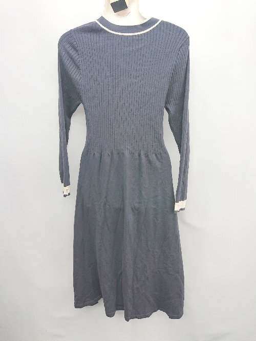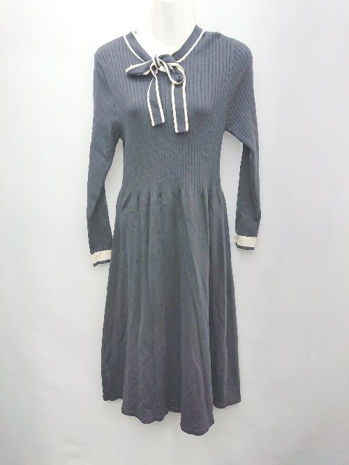 ◇ JAYRO ジャイロ ボウタイ ニット オフィスカジュアル 長袖 膝下丈 ワンピース サイズM ネイビー レディース P